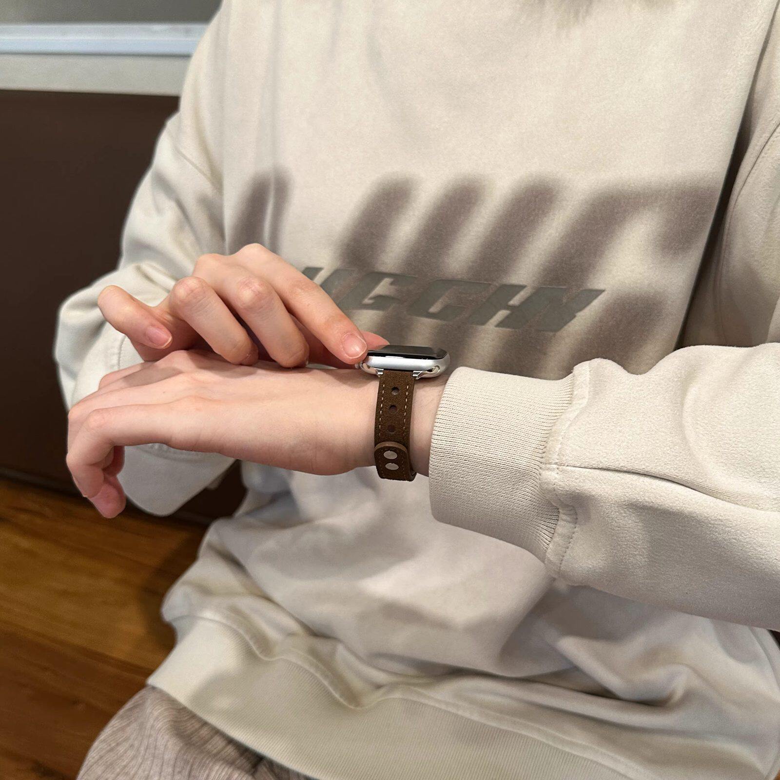 适用GT4/GT56女款41mm原装真皮表带按压款真皮手表带GT5pro女皮带