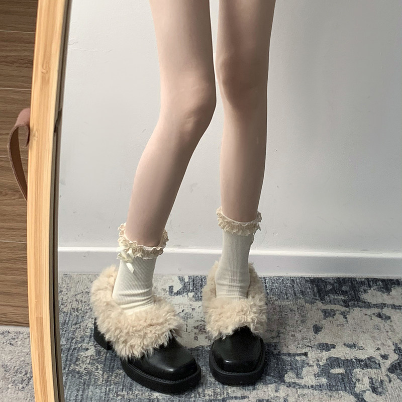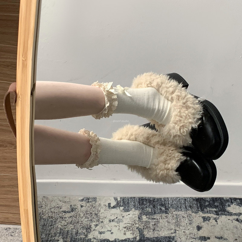 羊皮版复古玛丽珍鞋女方头秋冬季加绒保暖毛毛棉鞋平底晚晚单鞋女