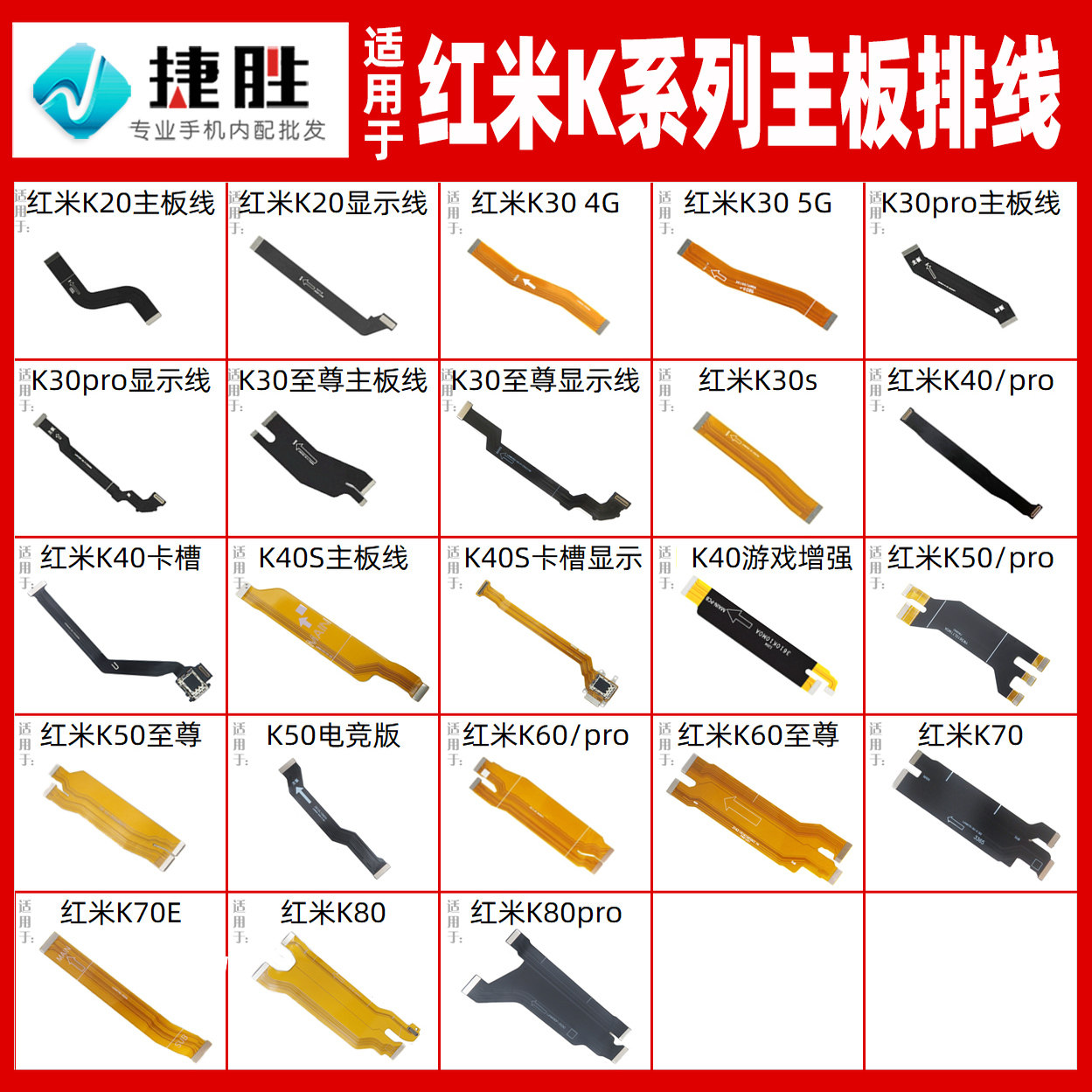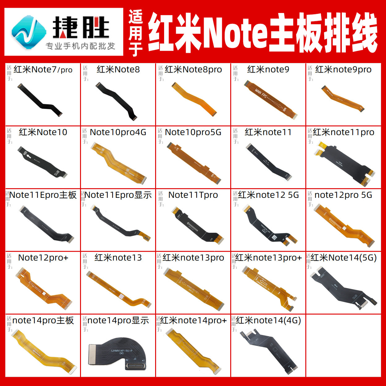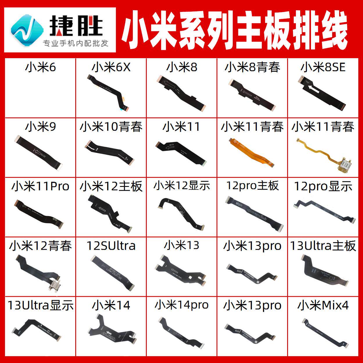 适用于红米6 8 8A 9 9A 10x 15 15C Turbo3 4 Pro 主板排线连接线