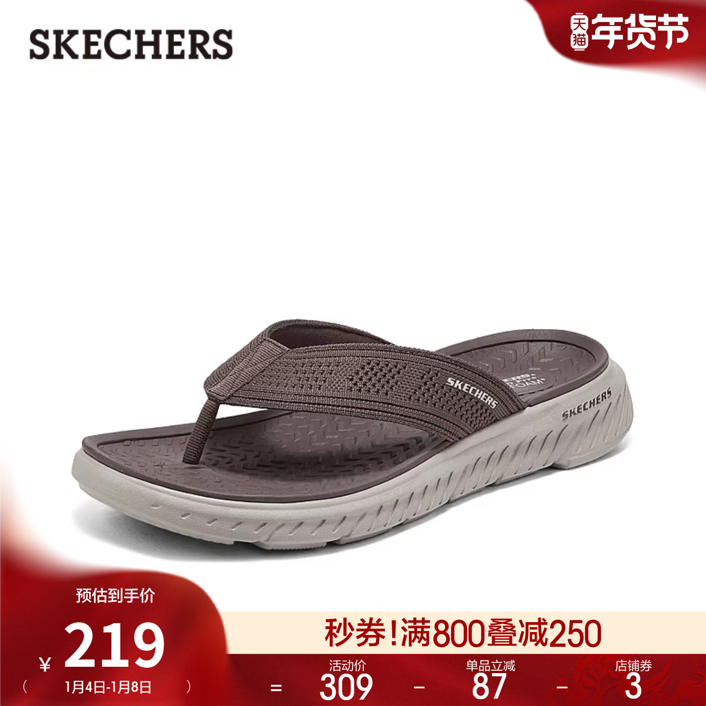 Skechers斯凯奇男鞋2025夏季新款一脚蹬休闲拖鞋舒适外穿人字拖