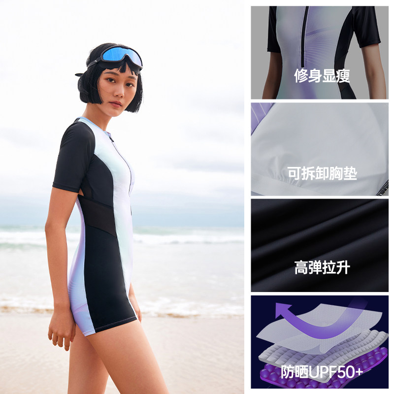 安踏小蛮腰丨女子平角连体泳装修身防晒海边弹力泳衣新款官方正品