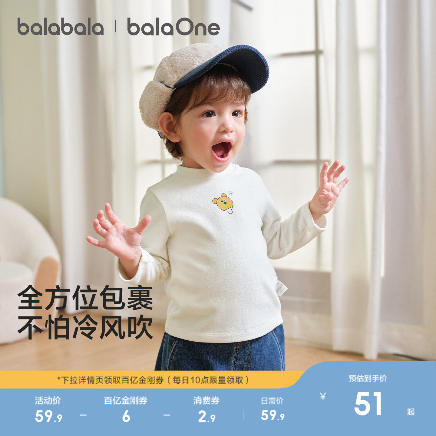迷你巴拉巴拉婴儿宝宝男女童长袖T恤2025冬新款联名半高领打底衫