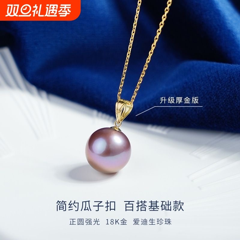 诸暨淡水珍珠紫色爱迪生18K扣吊坠项链网红锁骨链礼物黄金链子