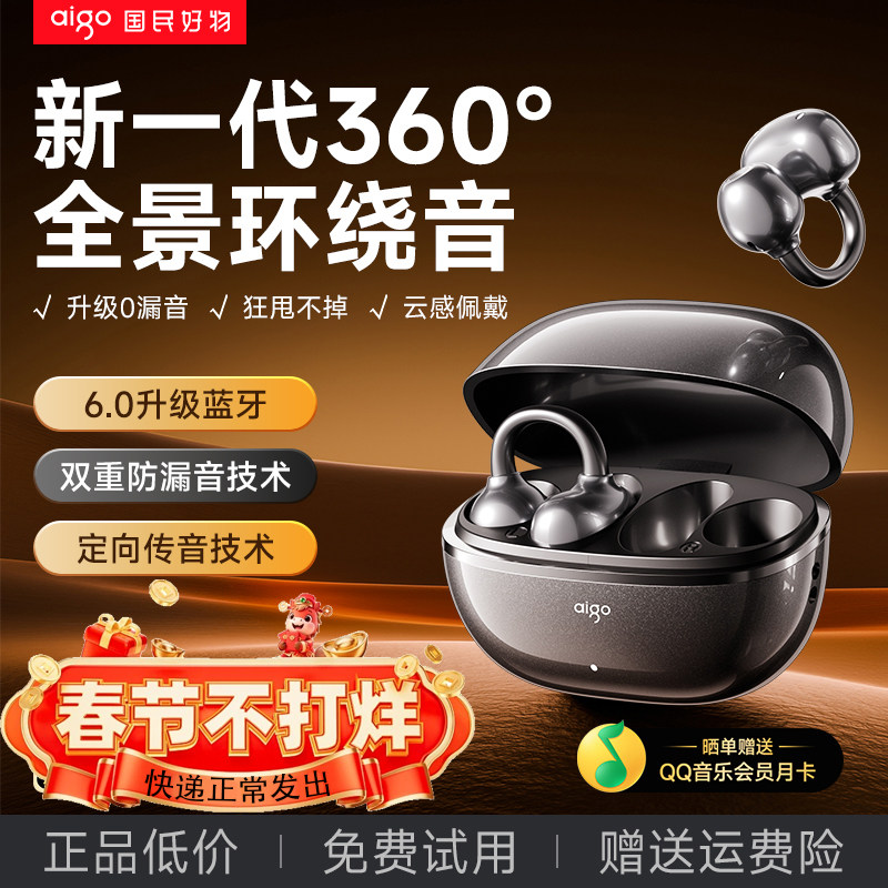 爱国者耳夹式蓝牙耳机2026新款超长续航大电量无线运动气骨传导男