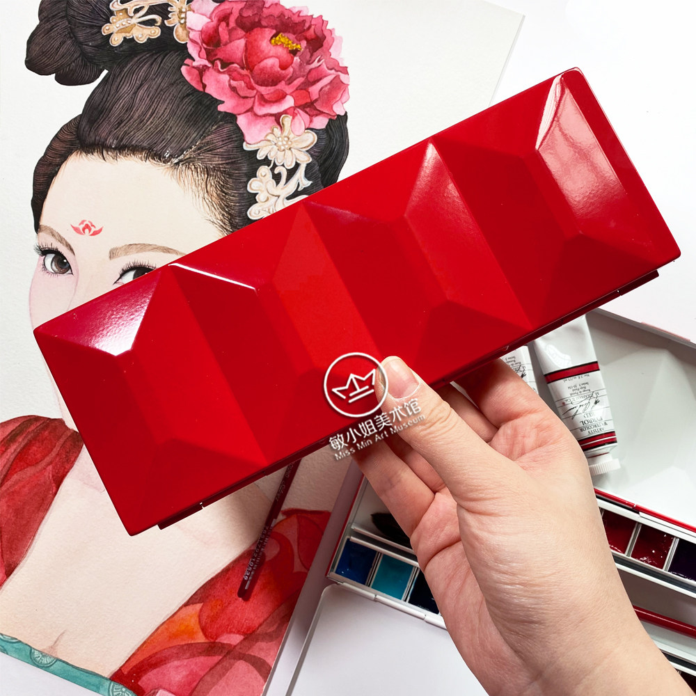 敏小姐美术馆国产调色重搪瓷水彩盒手工制作旅行水彩分装颜料铁盒