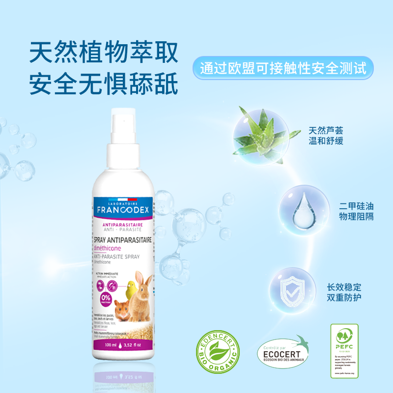 Francodex法兰康宠物驱虫喷雾鹦鹉兔子仓鼠豚鼠体外除虫专用滴剂
