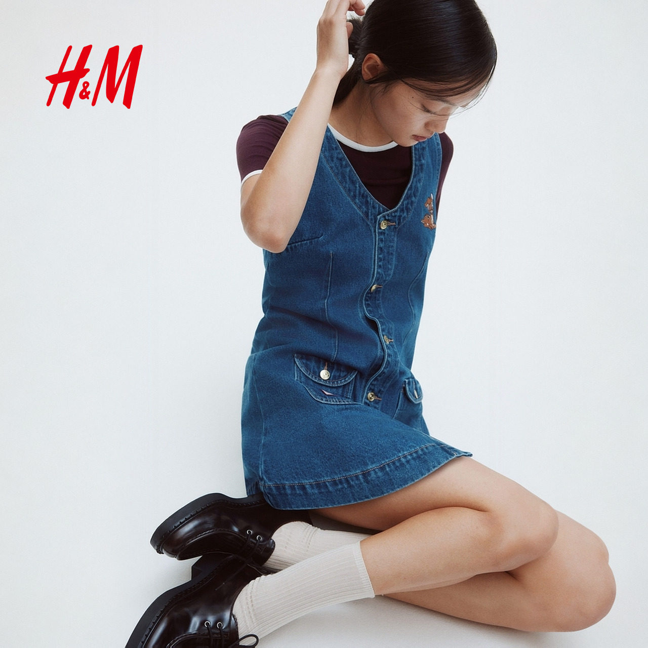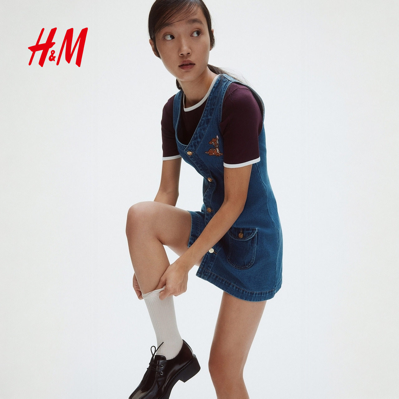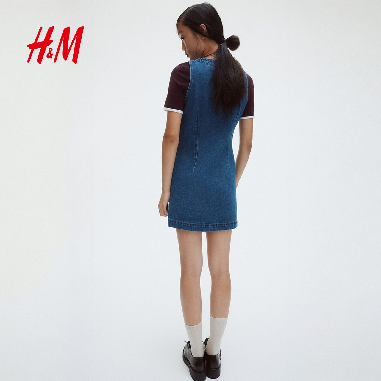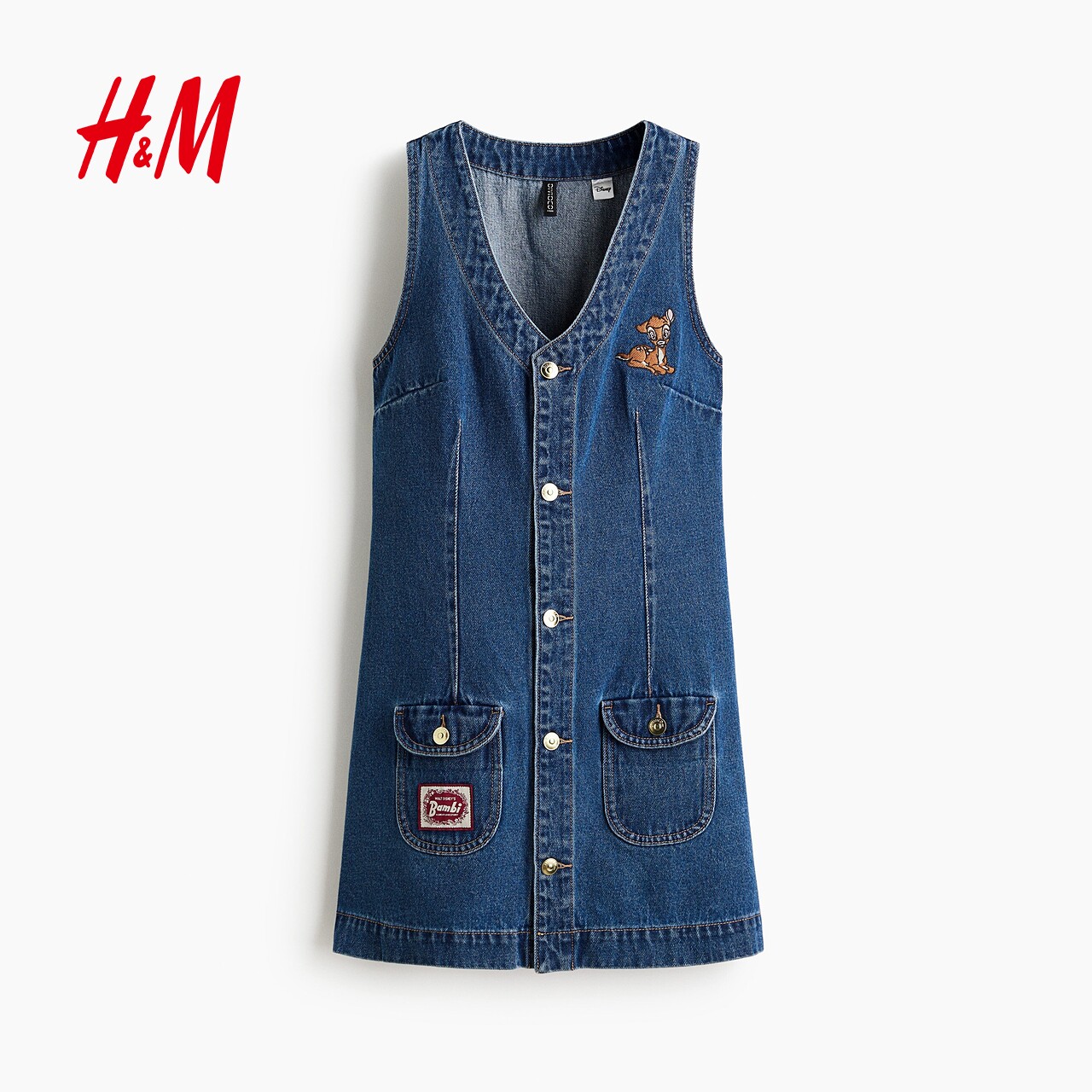 【小鹿斑比】HM女装连衣裙V领喇叭裙春夏无袖牛仔连身短裙1301383