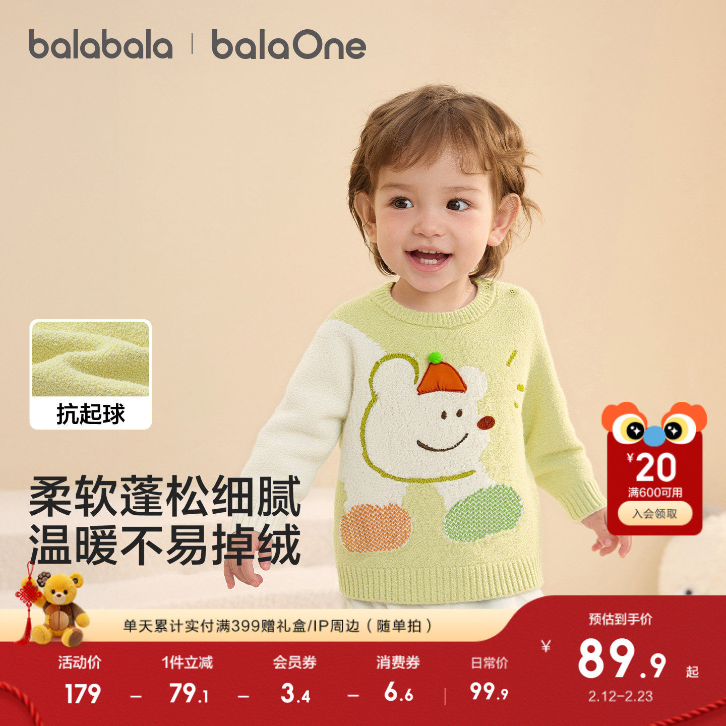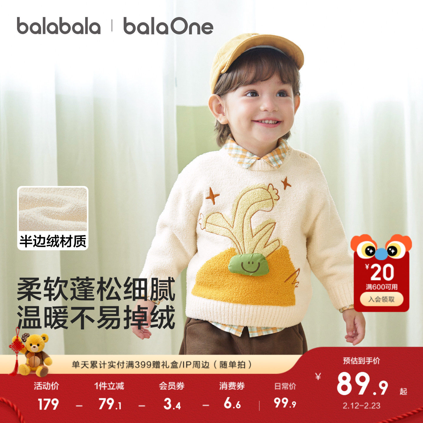 亲肤温暖套头毛衫,萌趣提花绣花图案