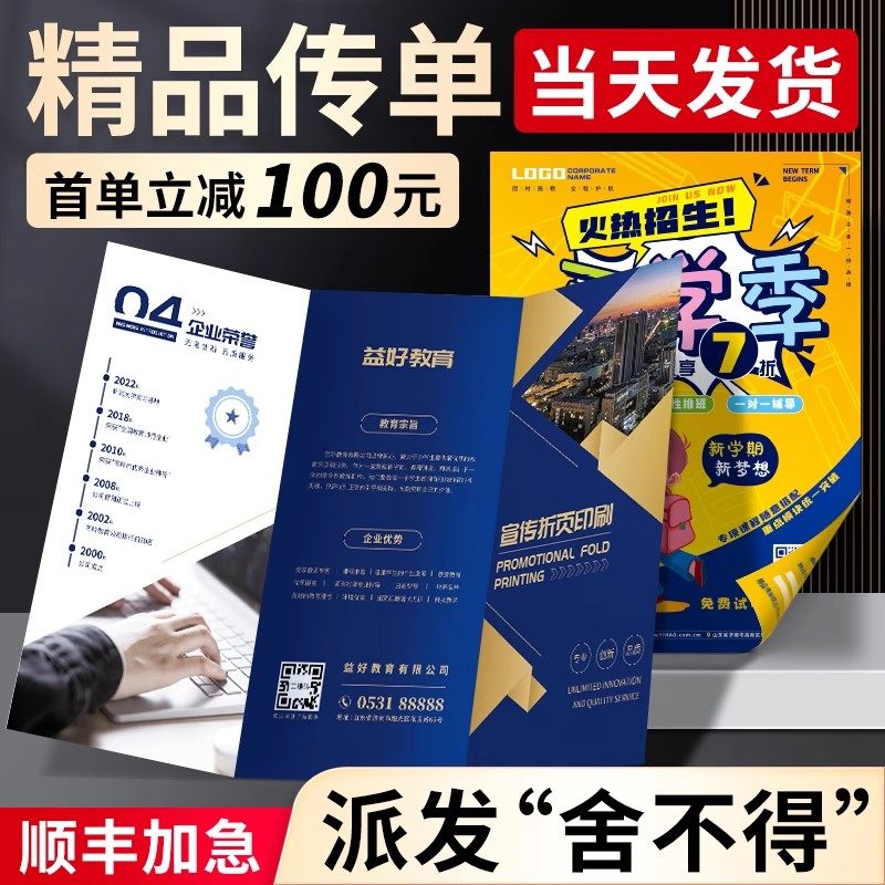 宣传单印制印刷宣传页定做免费设计单页制作彩印宣传册打印海报定制a4双面印刷纸张三折页订做a5彩页dm单画册
