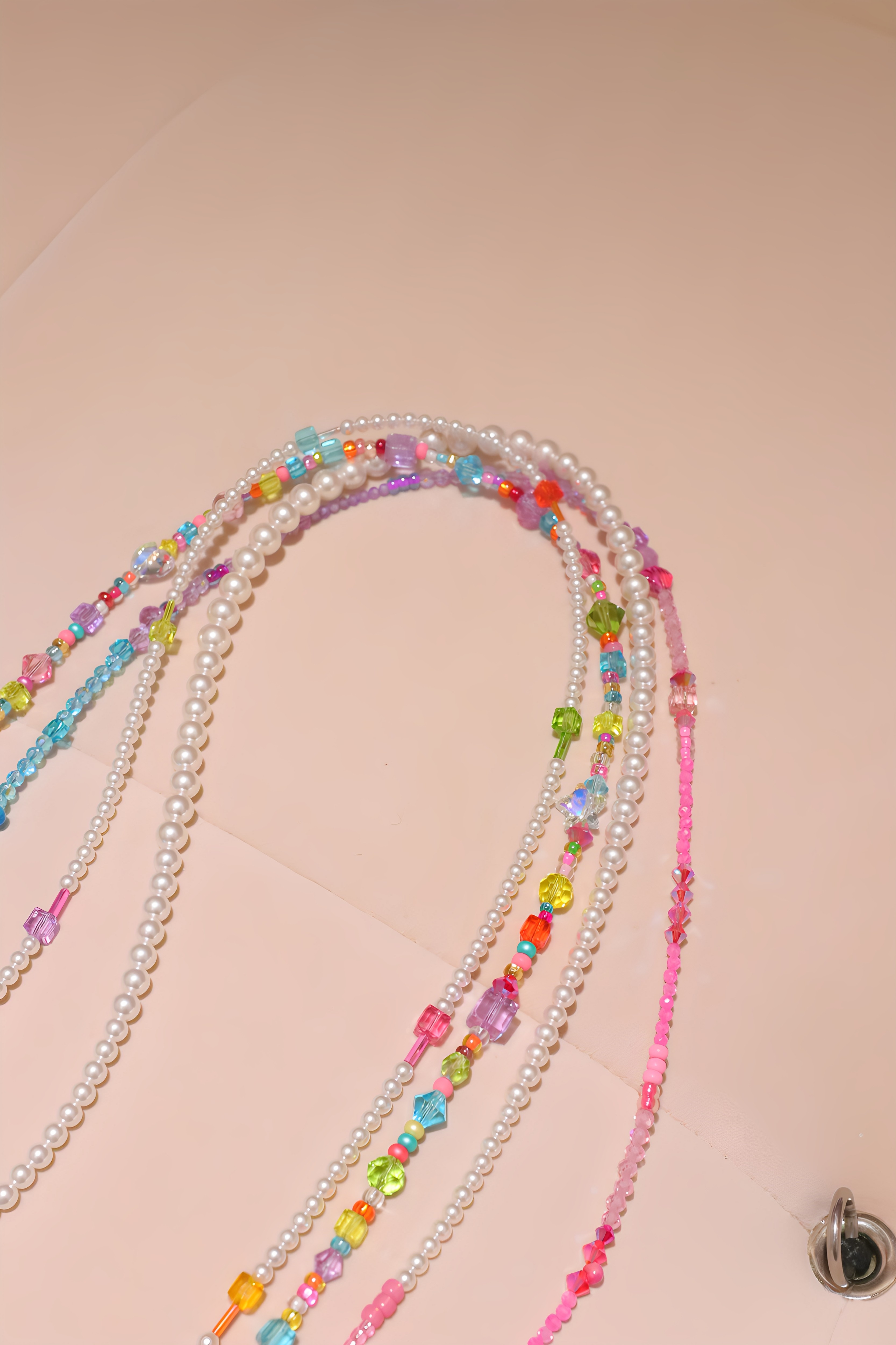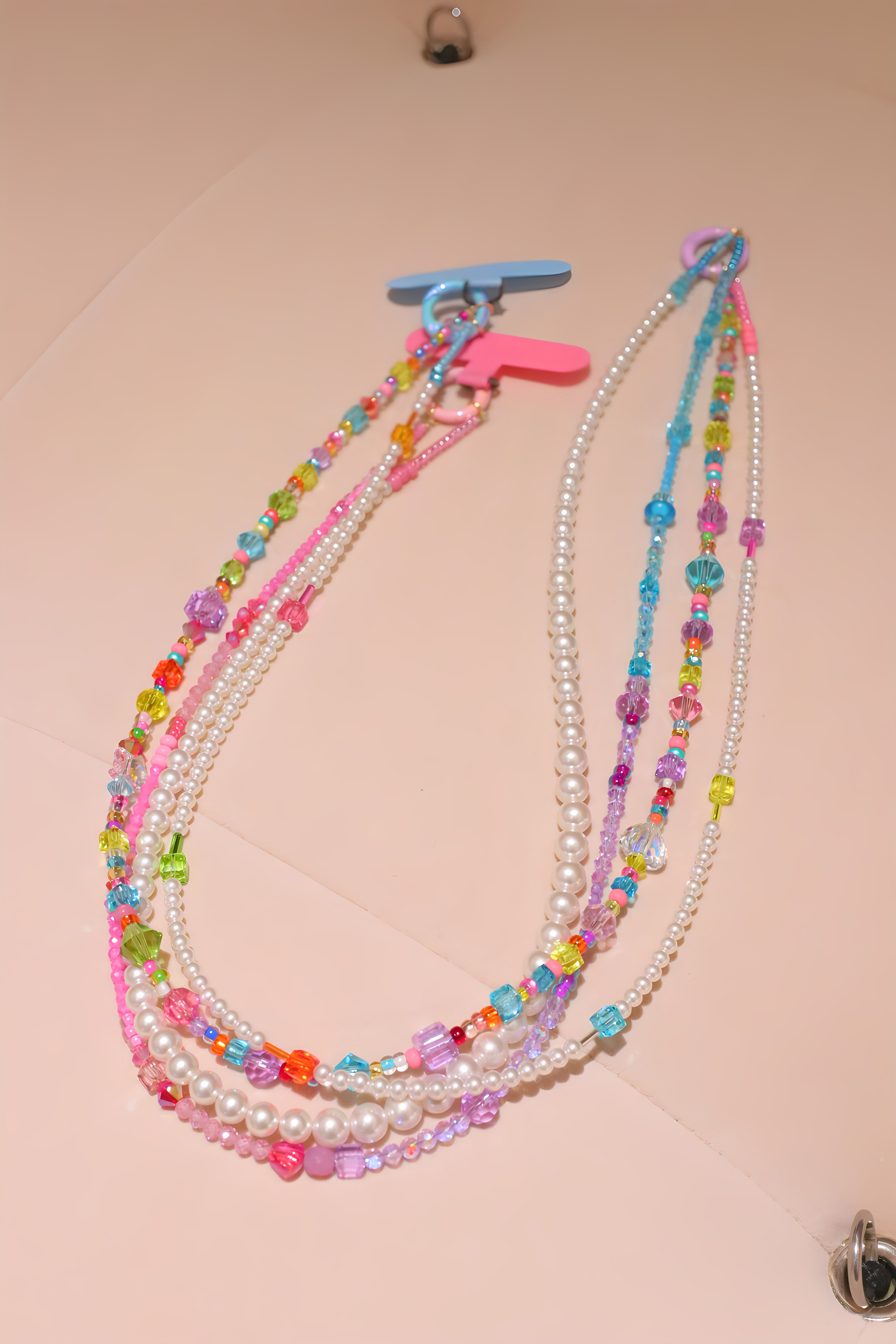 原创手作多巴胺配色人造水晶珍珠斜挎手机链配饰包包挂饰时髦精致