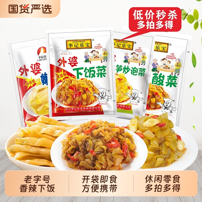 外婆榨菜菜芯开袋即食下饭神器58g*2袋多拍多得便携小袋装拌饭面