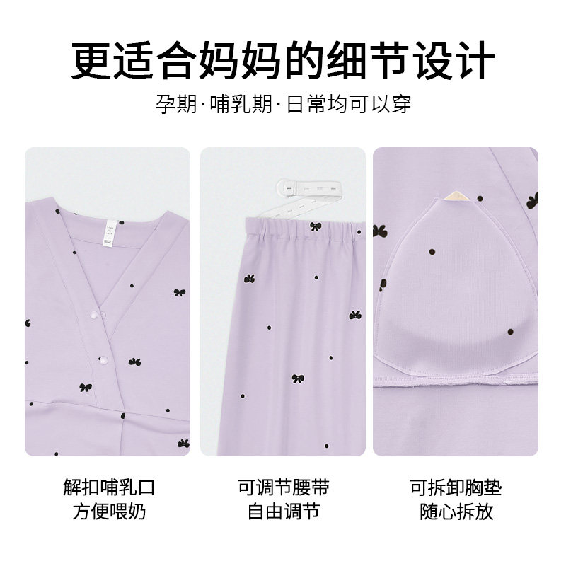 带胸垫奶香风纯棉月子服春秋季产后产妇孕妇睡衣秋冬款哺乳喂奶衣