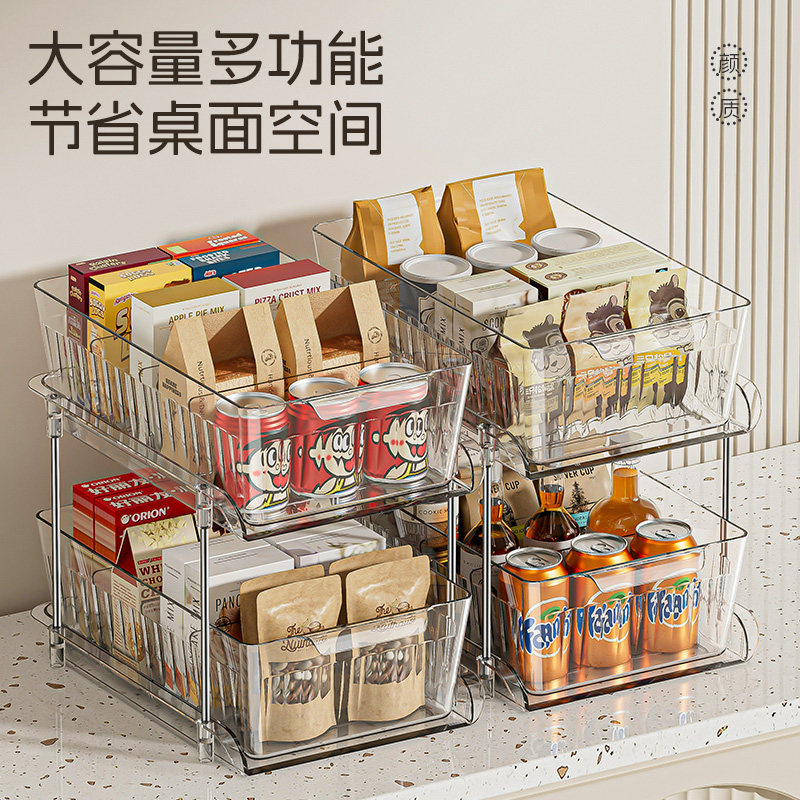 厨房抽拉式置物架柜子橱柜内分层收纳神器双层厨柜下水槽抽屉拉篮