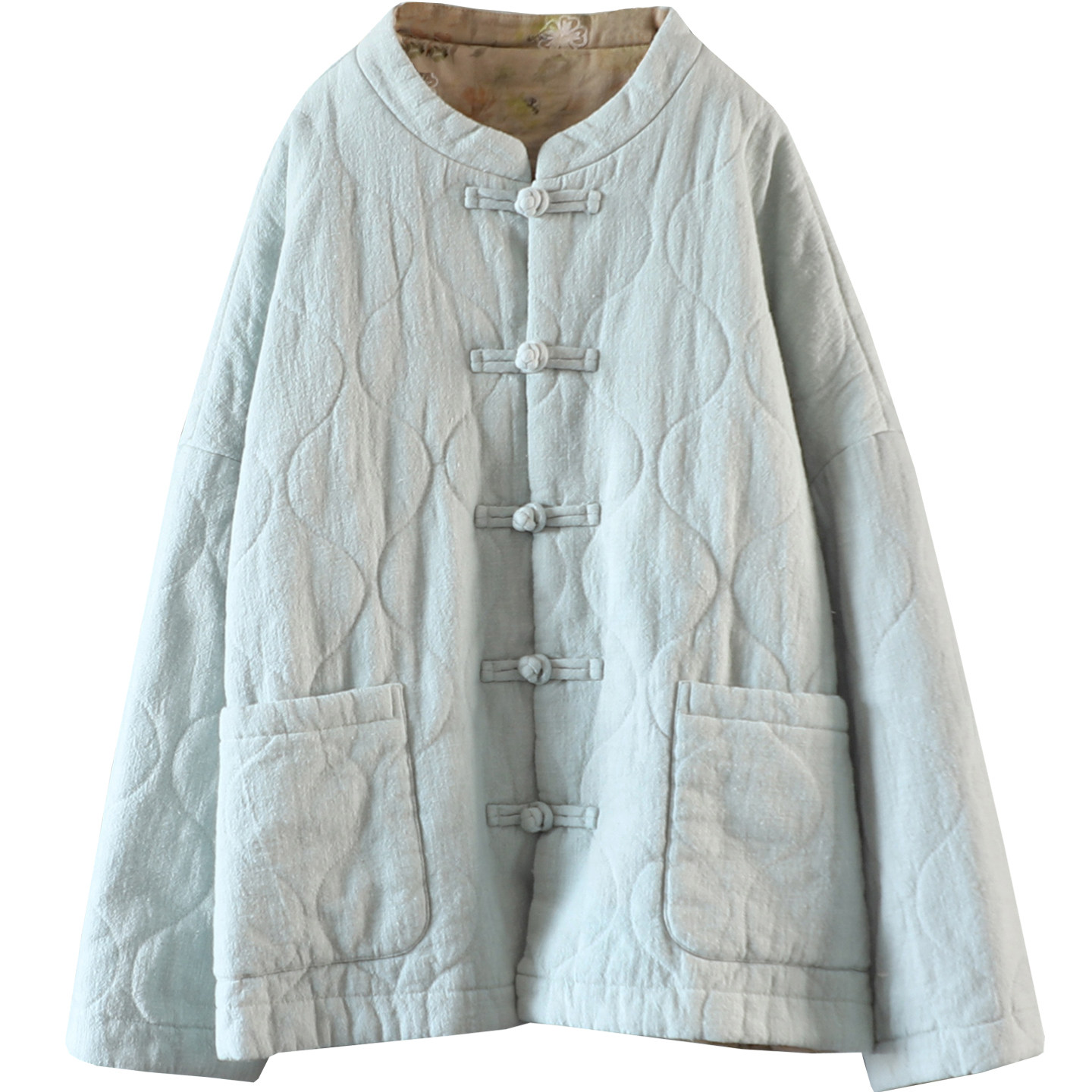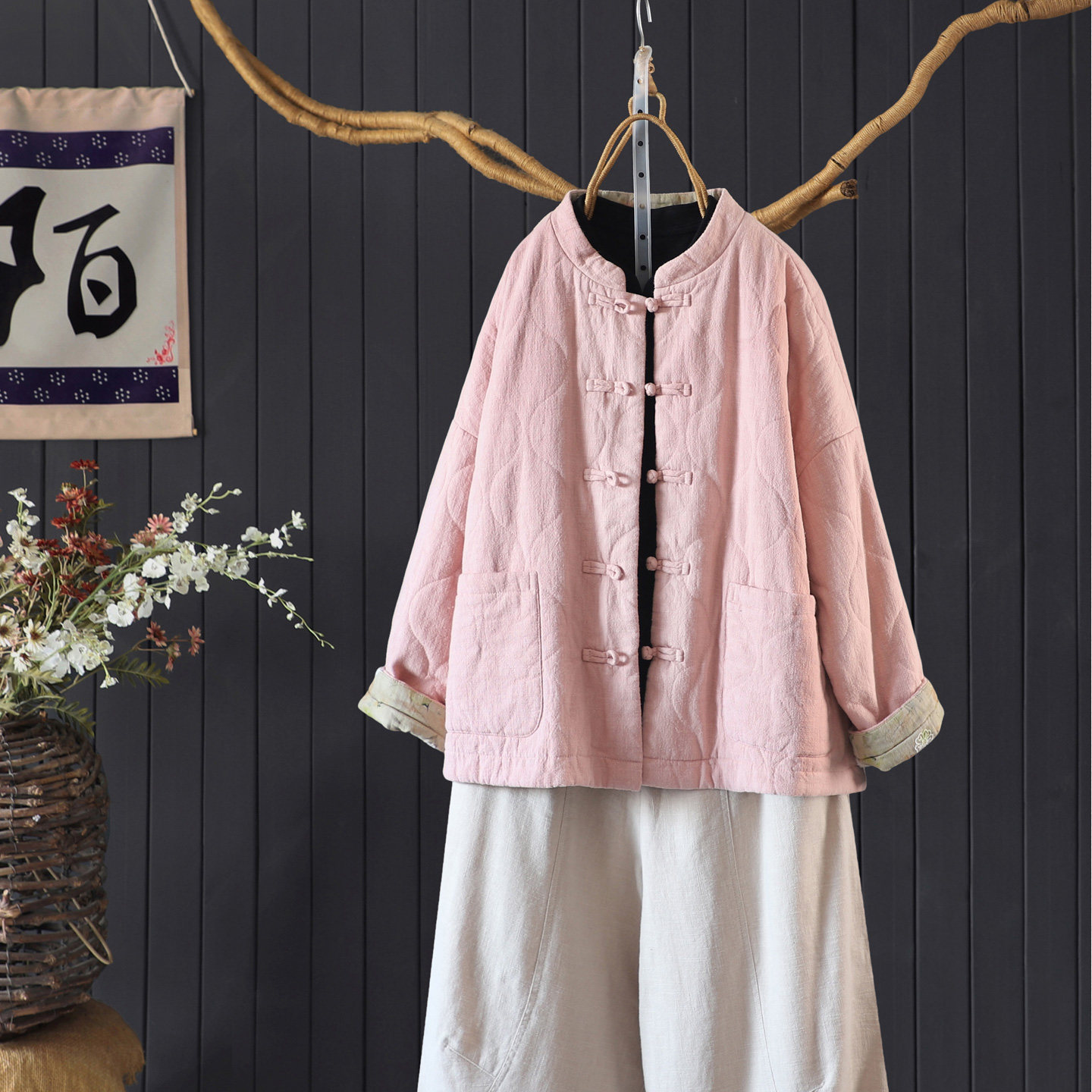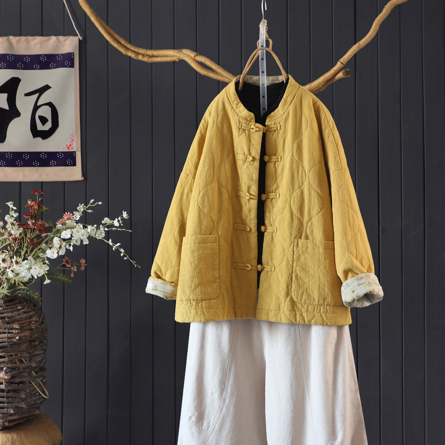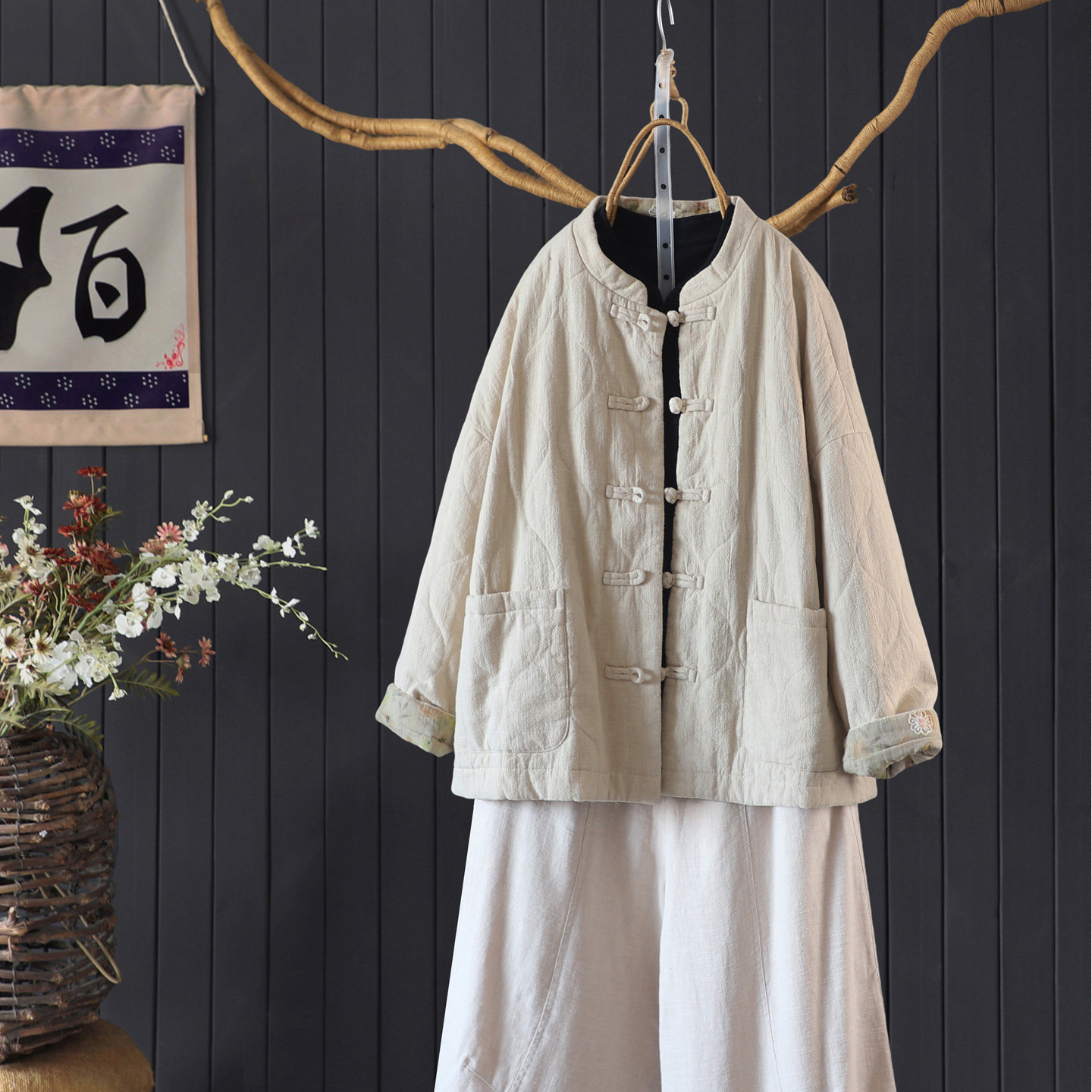 宽松慵懒立领盘扣夹棉保暖亚麻外套开衫冬复古国风中式棉衣棉服女