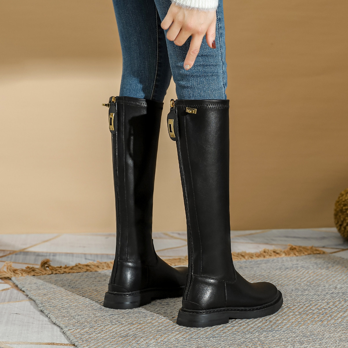 美拉德堆堆长靴女内增高长筒靴显瘦骑士靴西部靴加宽42大码41-43