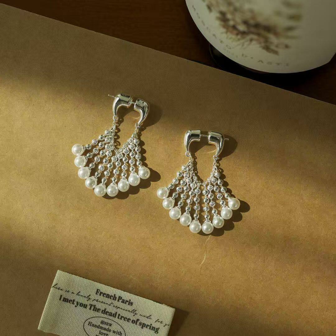 《珠帘摇曳》仿珍珠耳环流苏女2026新款设计感小众耳饰耳钉高级感