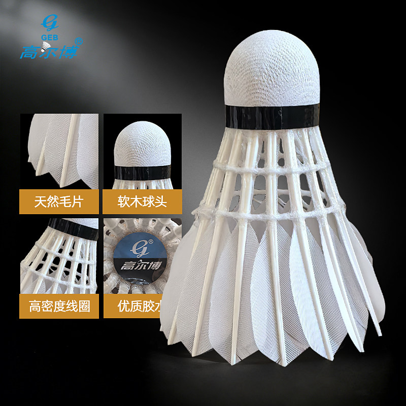 高尔博羽毛球真耐打真白羽真鹅毛16根室内外训练比赛弯毛粗用球