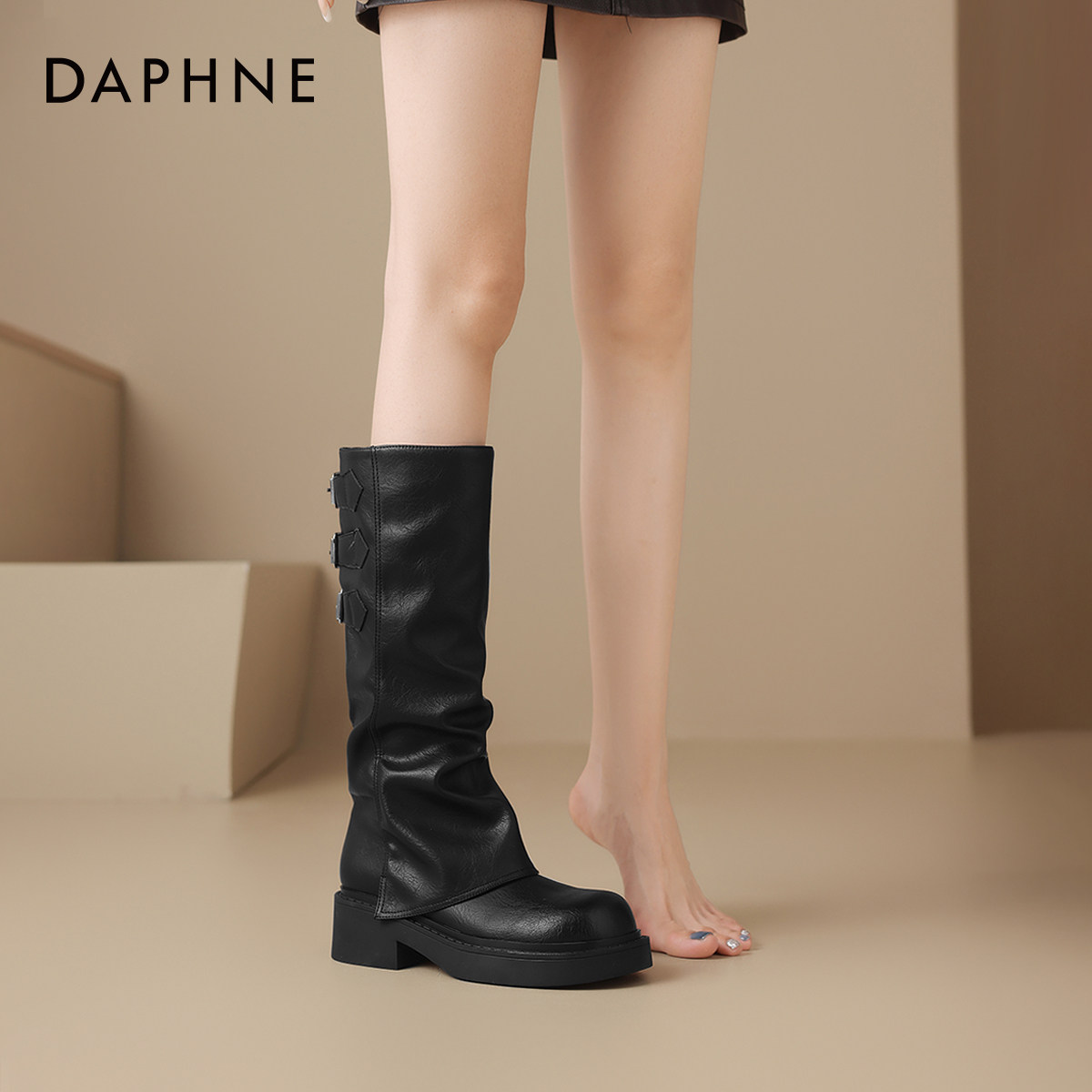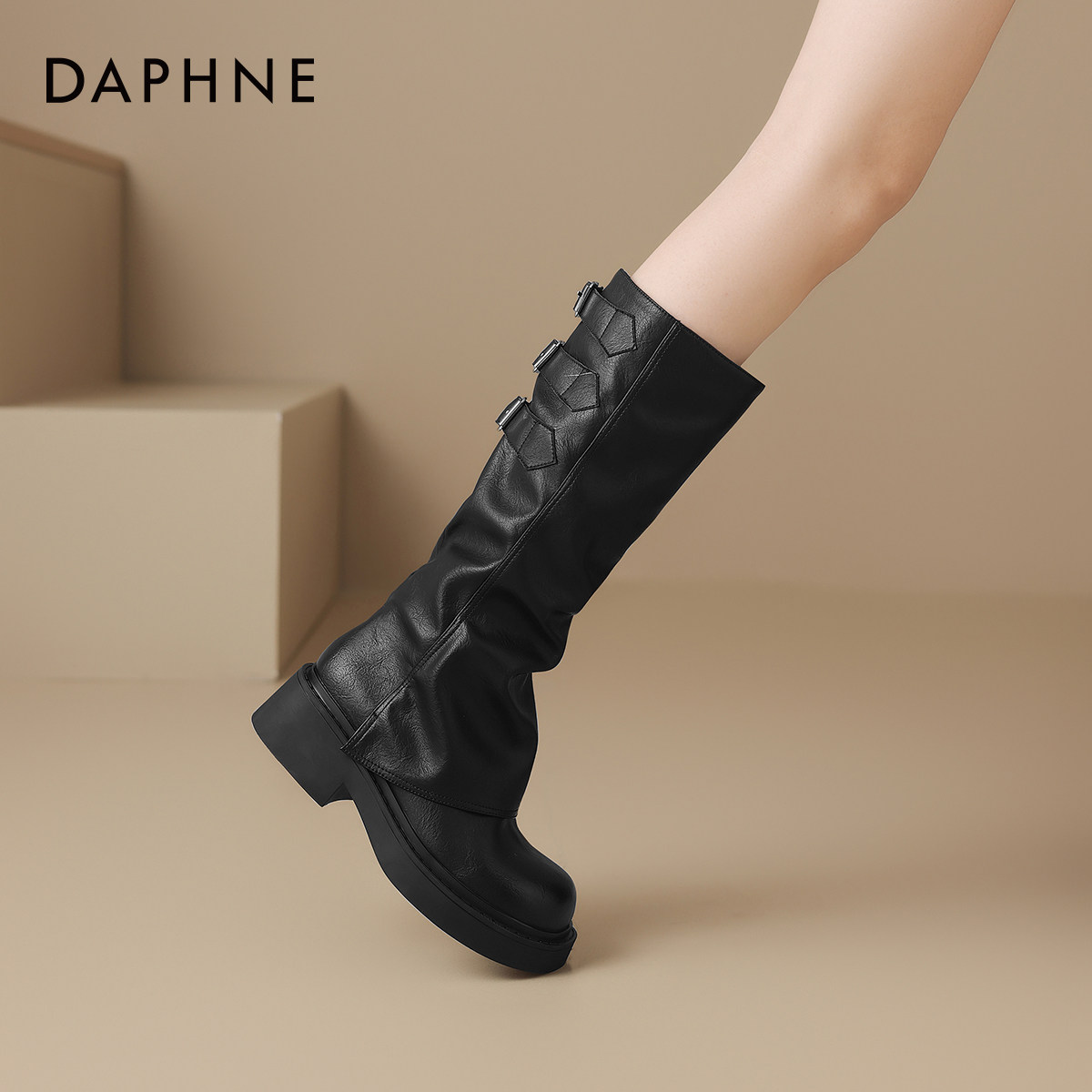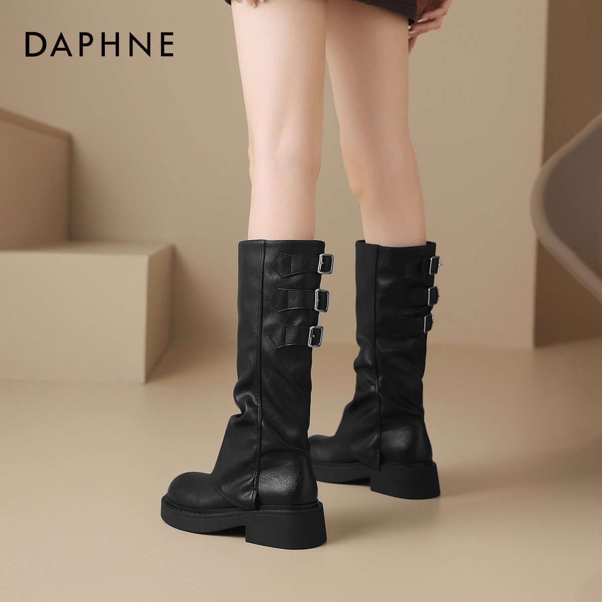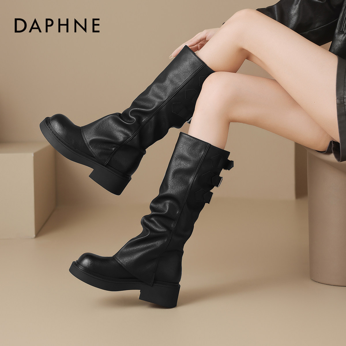 达芙妮黑色长筒靴女款2025新款冬季裤管靴厚底靴子女鞋高筒骑士靴