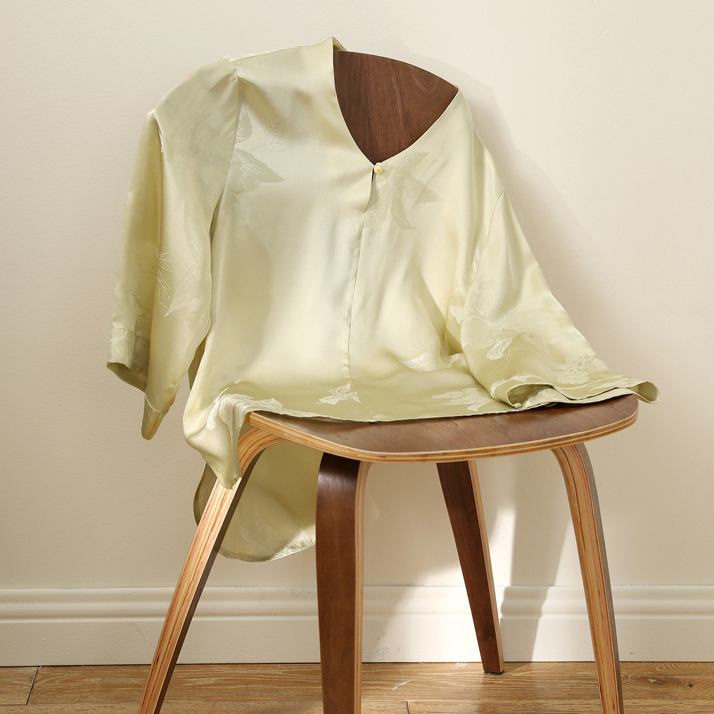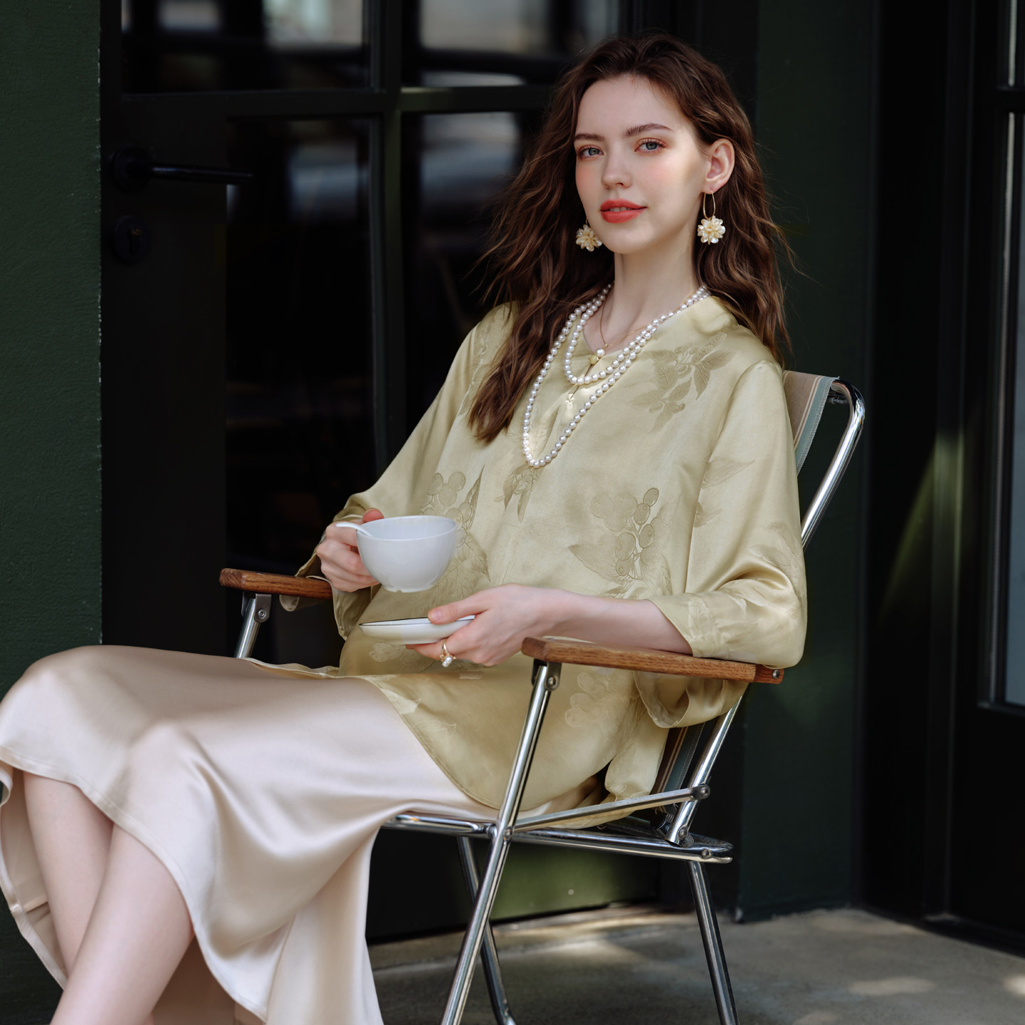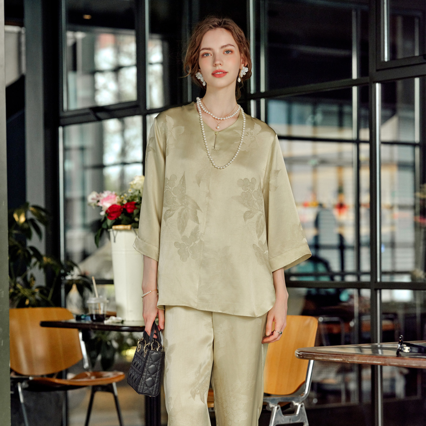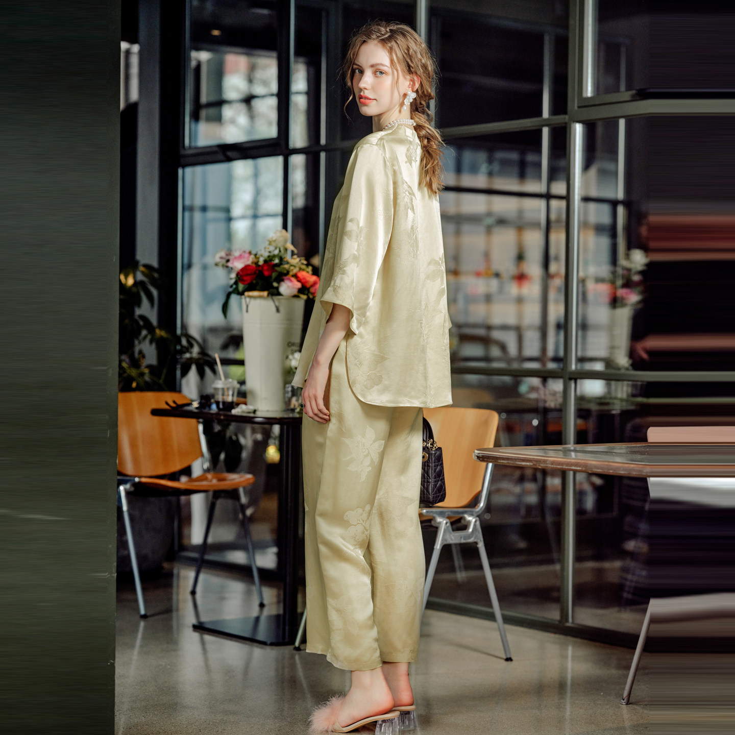 美标春秋款新品七分袖丝绸睡衣套装女桑蚕丝中国风可外穿家居服夏