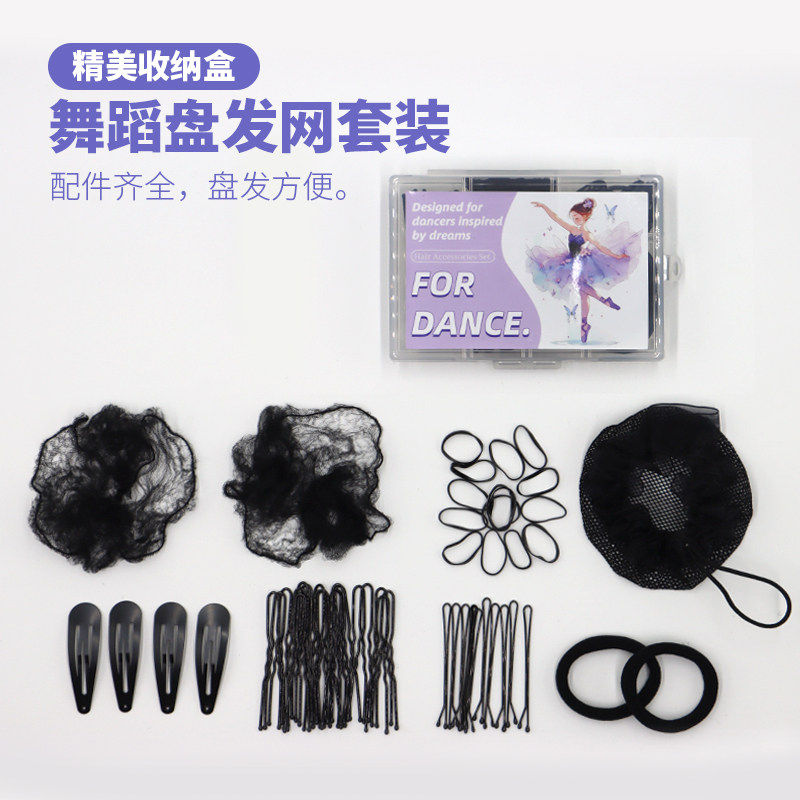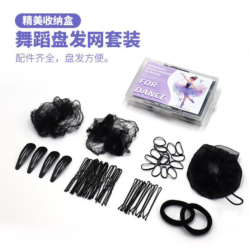 舞蹈盘发考级隐形发网儿童芭蕾发圈丸子头网兜头发夹发饰套装盒装