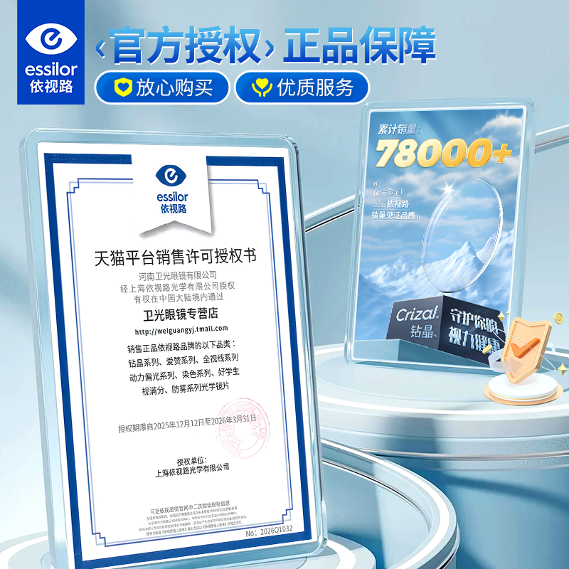 依视路镜片膜岩膜致近视眼镜超薄爱赞钻晶a4防蓝光变色官方旗舰店