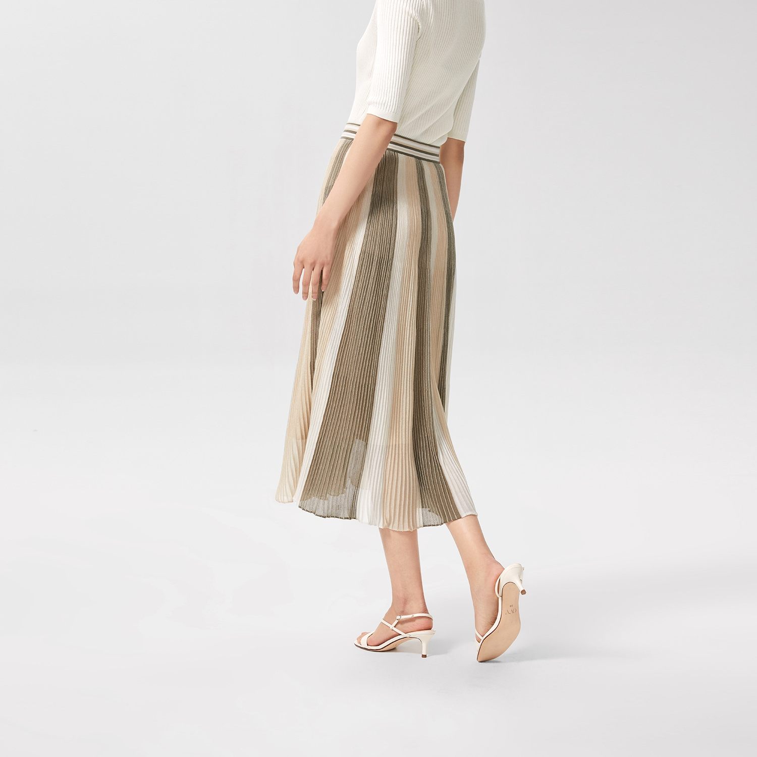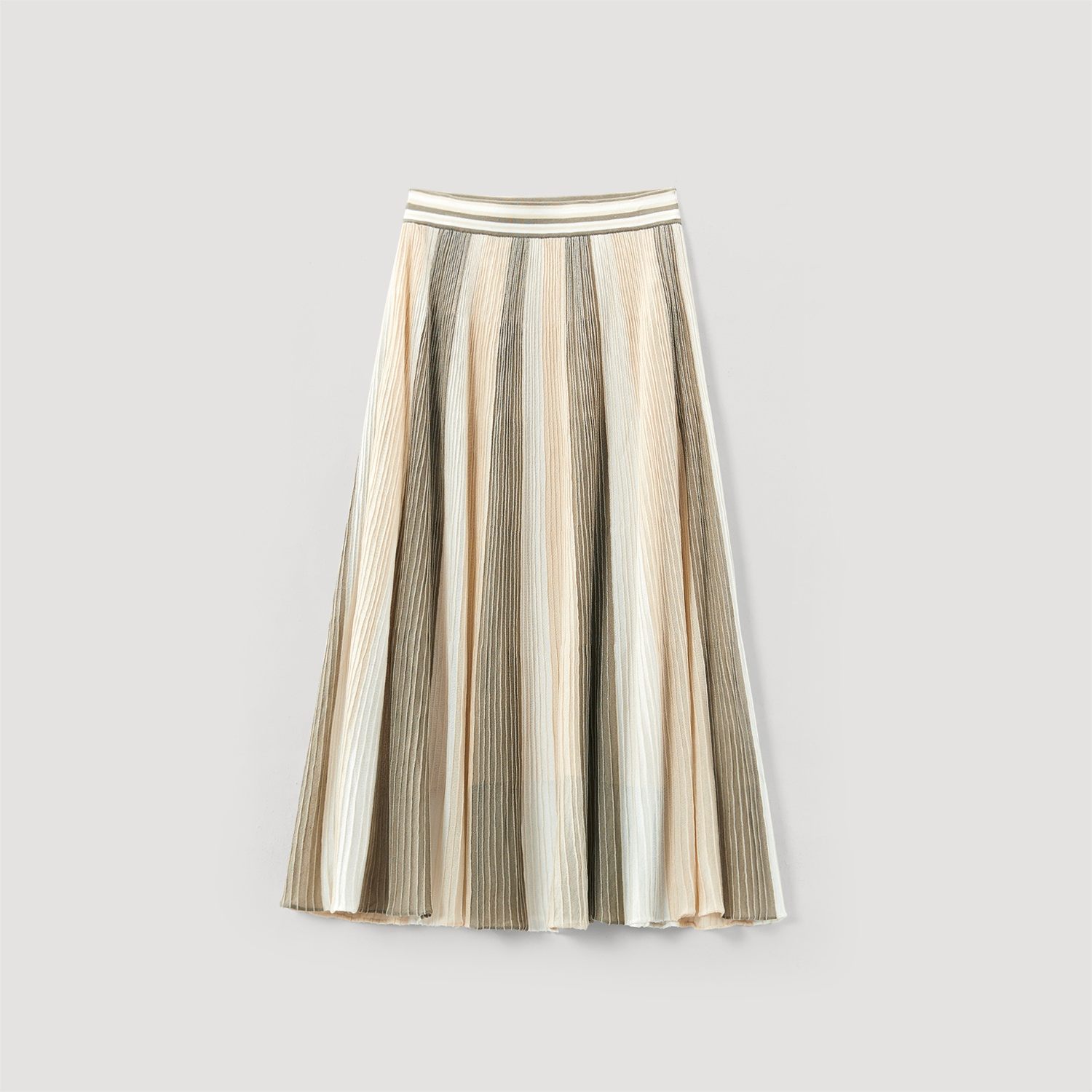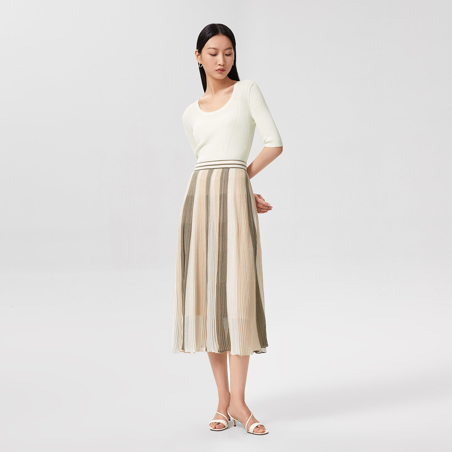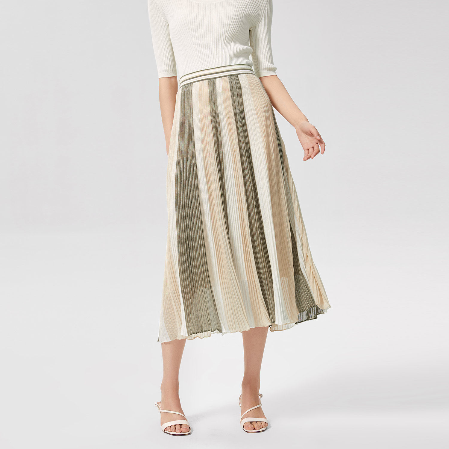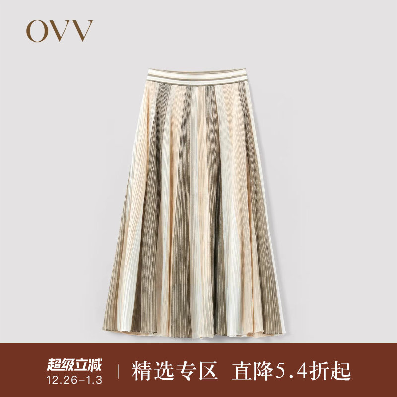 OVV春夏热卖女装多色条纹弹力松紧拼接百褶时尚针织半身裙