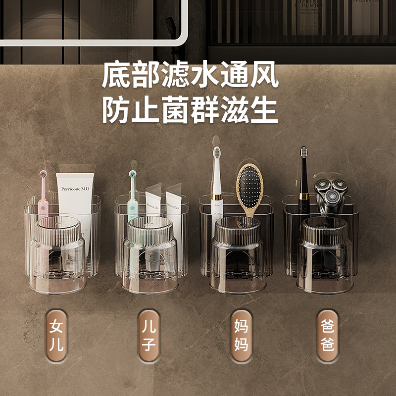 牙刷置物架免打孔漱口杯刷牙杯卫生间壁挂式家庭电动牙膏牙刷架子