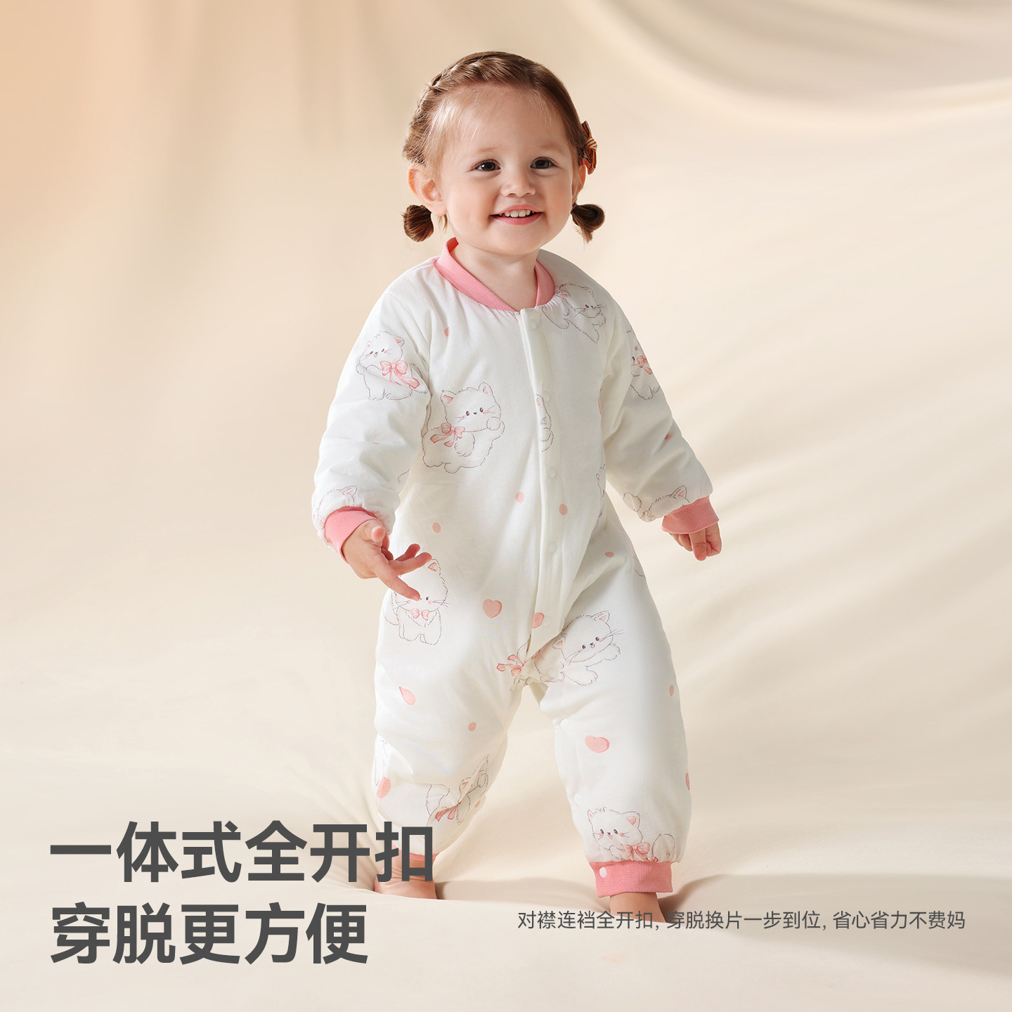 贝肽斯婴儿夹棉连体衣秋冬加厚纯棉新生儿男女宝宝保暖外出哈衣