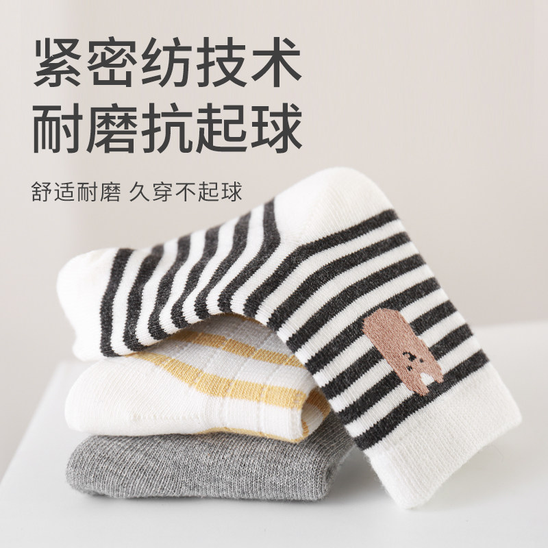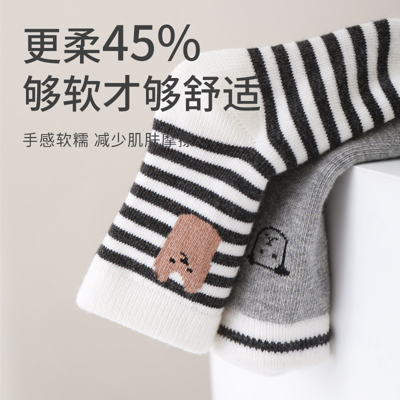 五朵棉宝宝袜子秋季A类婴幼儿棉袜秋冬男童松口不勒腿无骨中筒袜