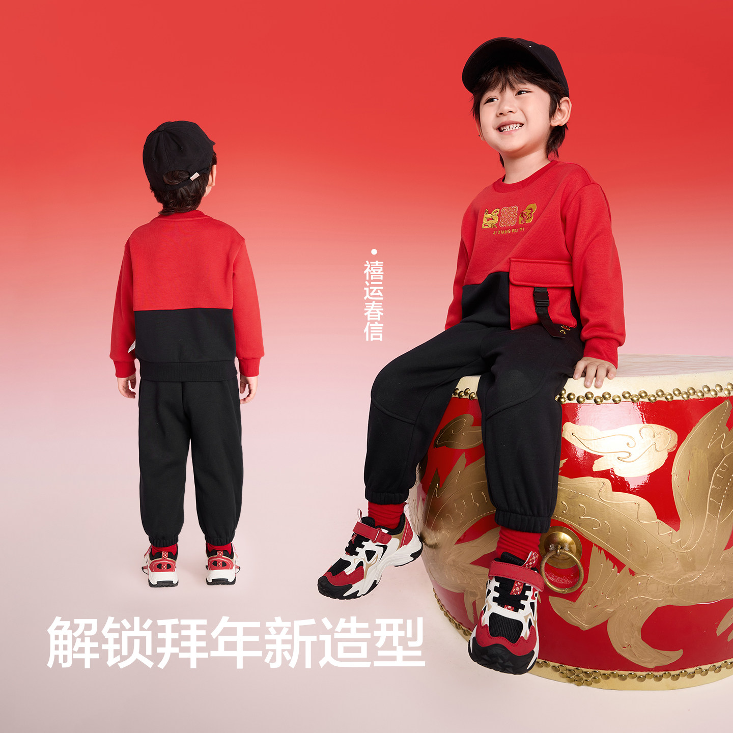 巴拉巴拉童装儿童套装男童宝宝拜年服2025新款秋冬装棒球服新年潮