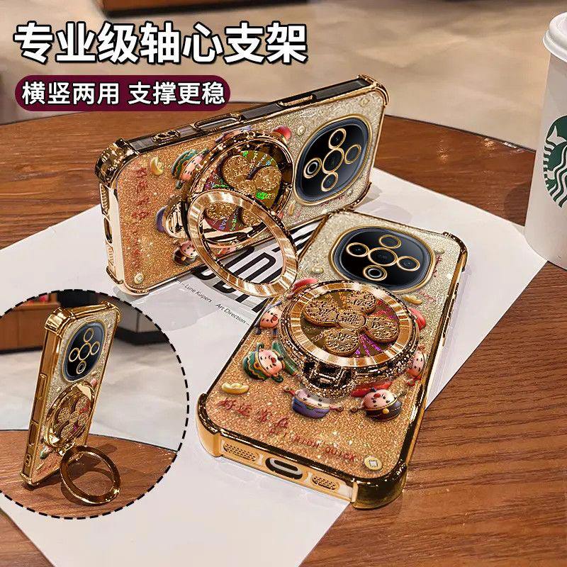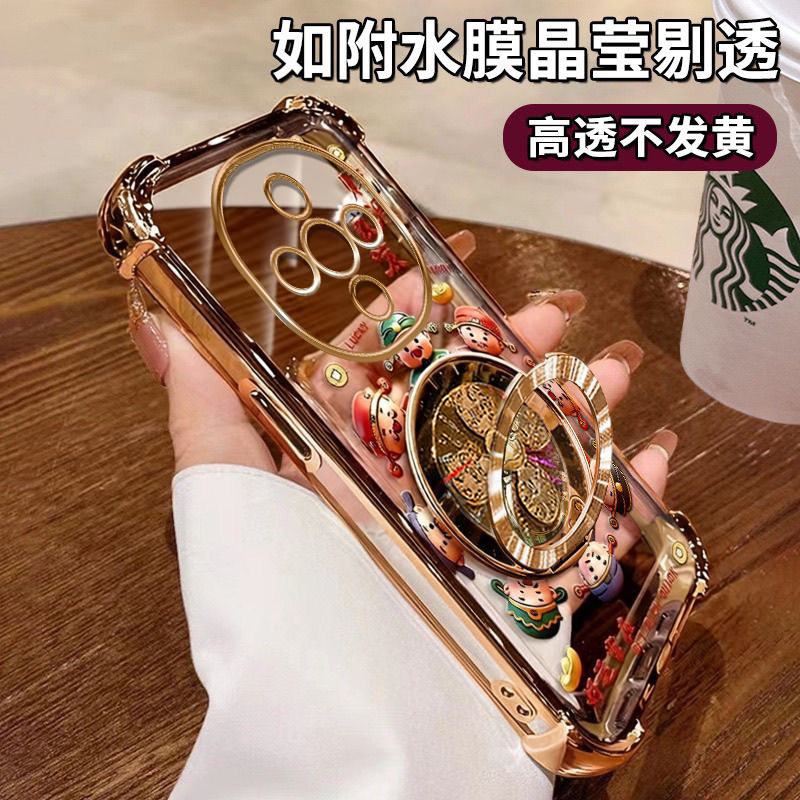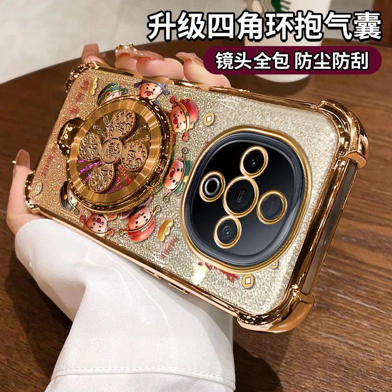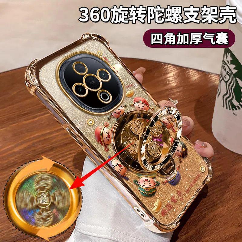适用VIVOY300手机壳财源滚滚四角防摔Y300i硅胶全包电镀气囊vivoY300Pro风生水起陀螺支架保护套