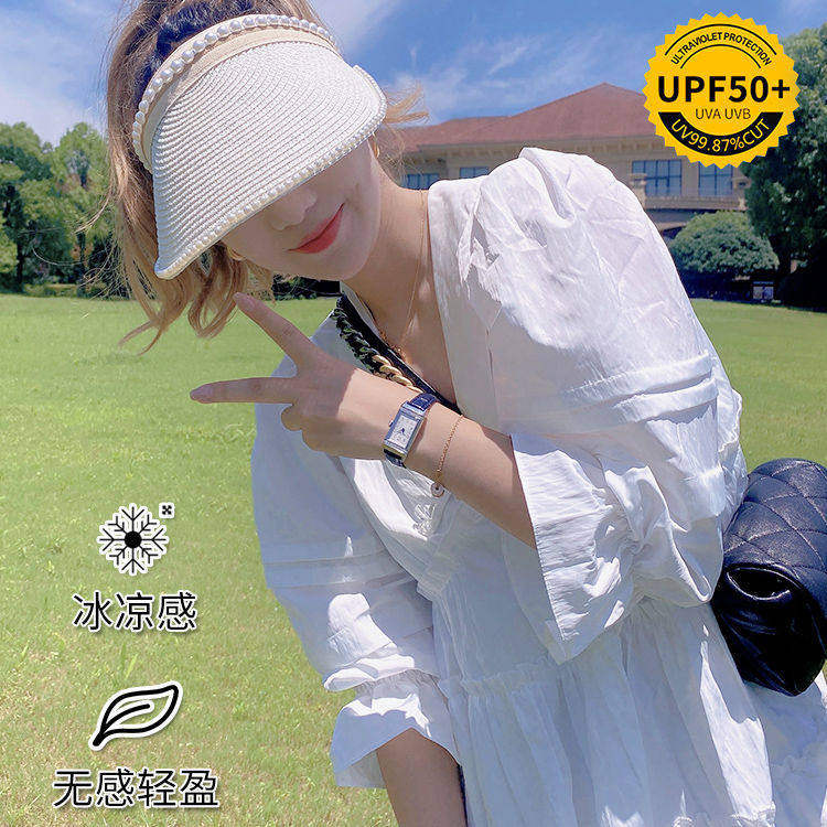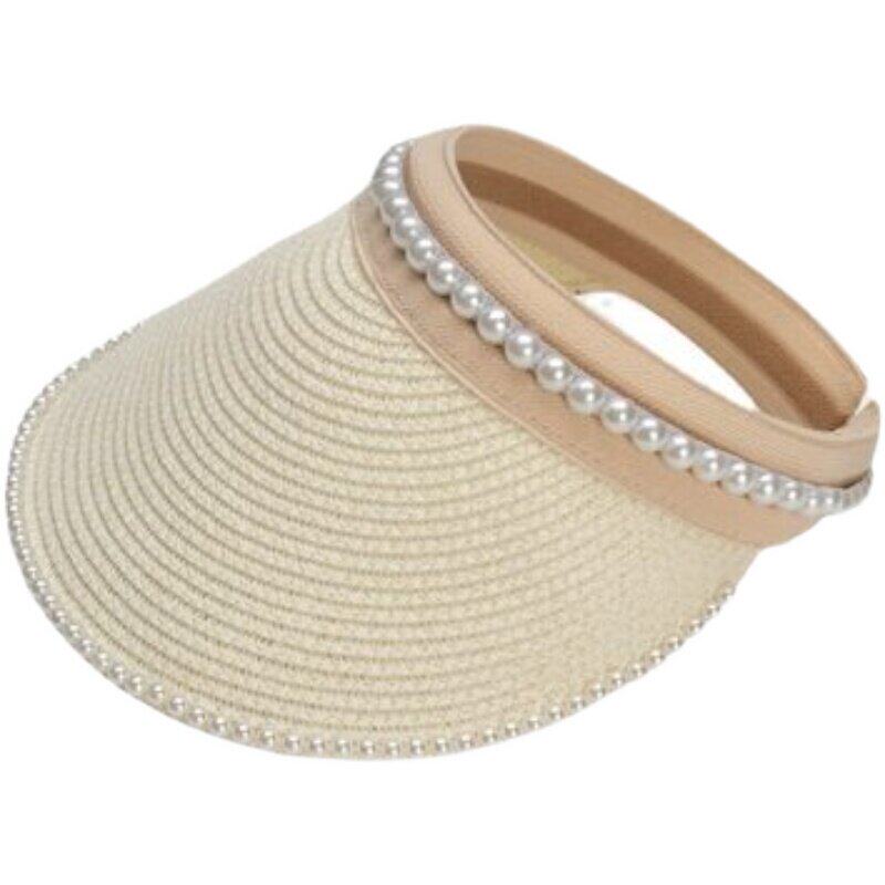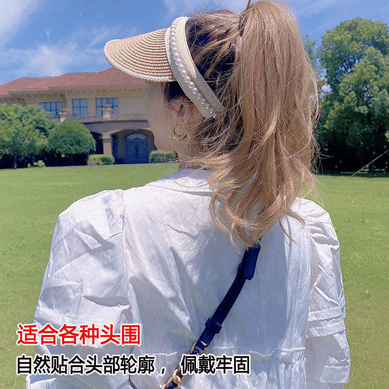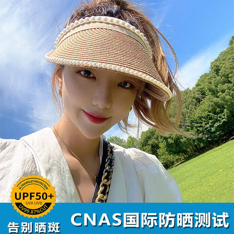 网红空顶帽子女遮阳帽夏季百搭防晒草编小清新夏季百搭珍珠太阳帽