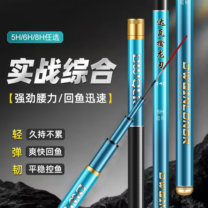 正品达瓦擒龙刃钓鱼竿长节手竿台钓竿5H综合竿6H19调8H轻量大物杆