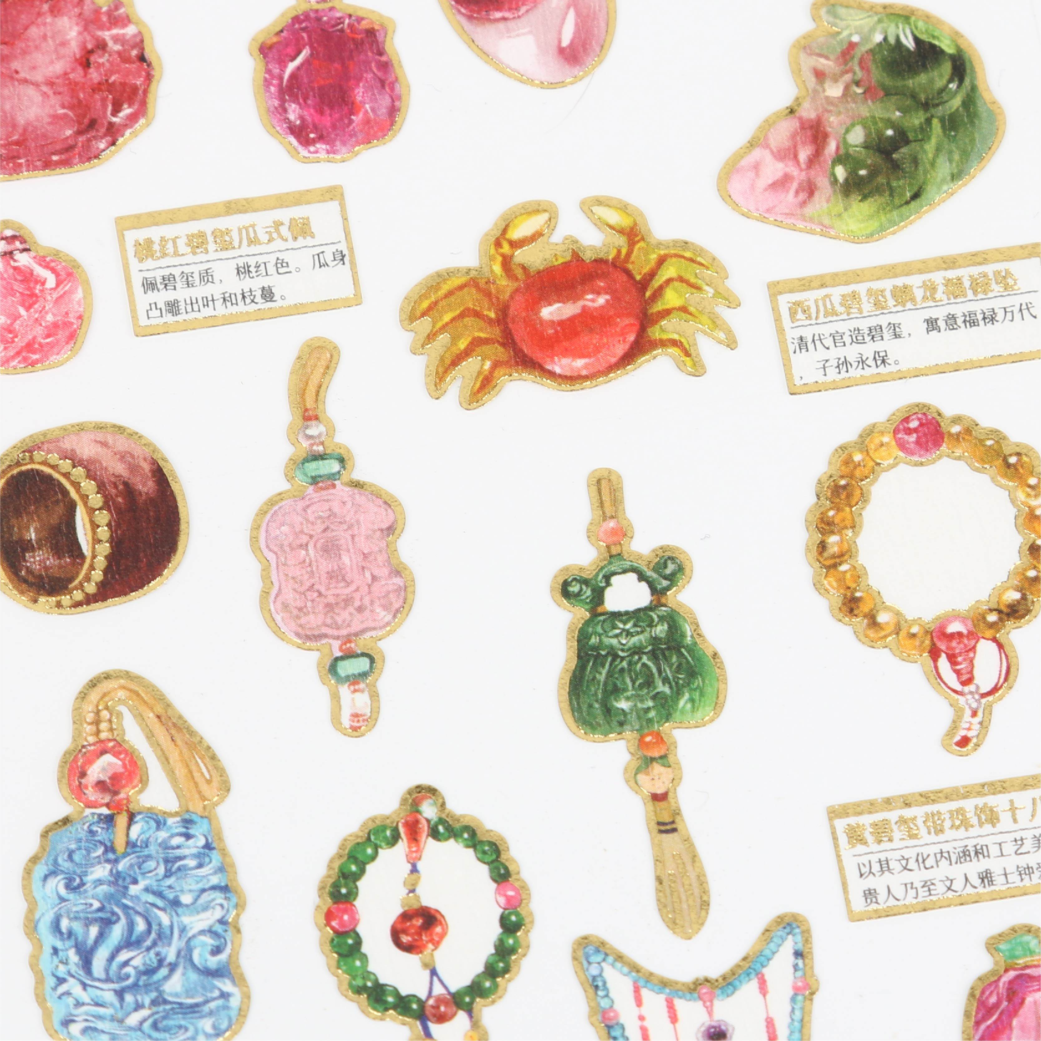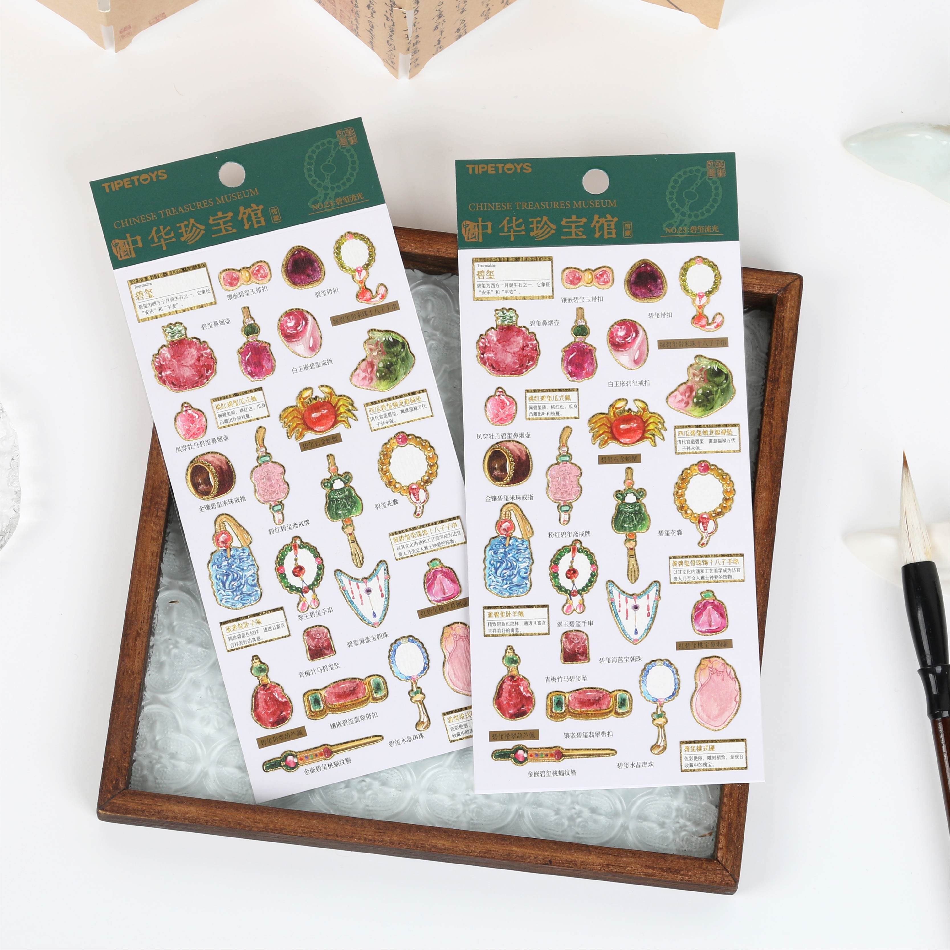 TIPETOYS国风咕卡中华珍宝馆碧玺流光贴纸西方十月诞生石戒指手串珠宝立体图案笔记手账本diy装饰无痕贴画