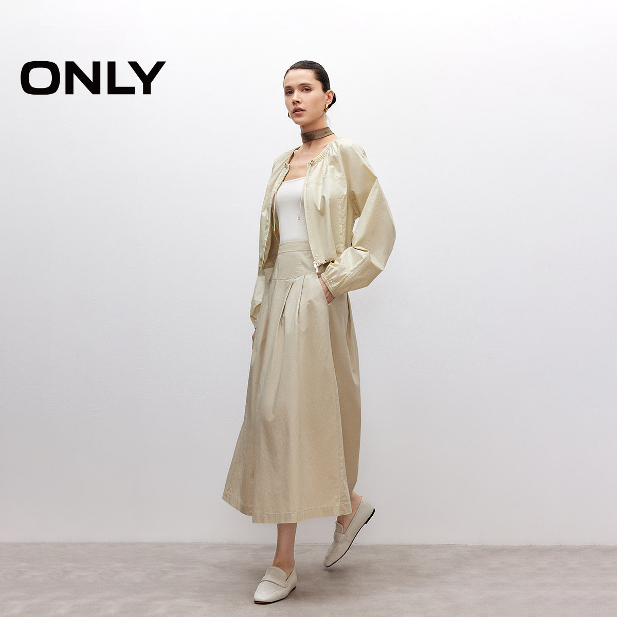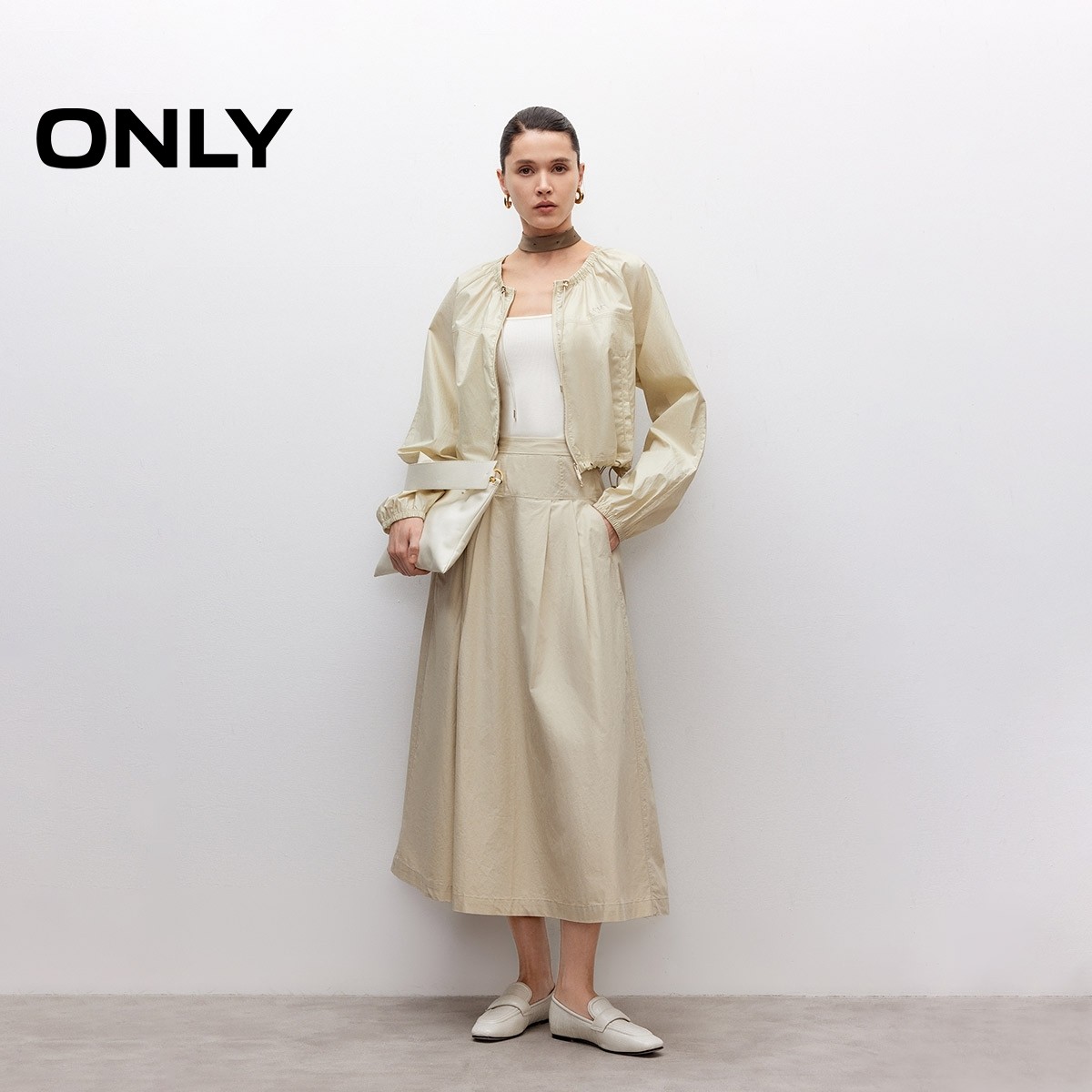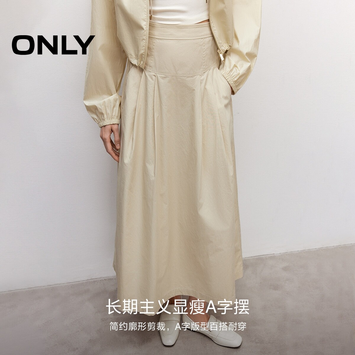 ONLY夏季松弛感简约纯色设计显瘦高腰长裙伞裙半身裙女