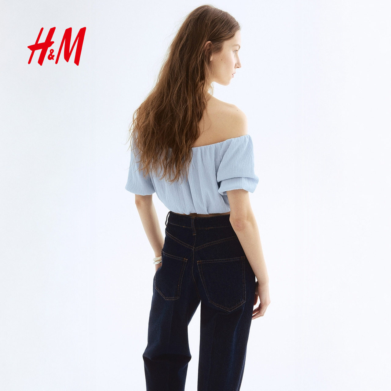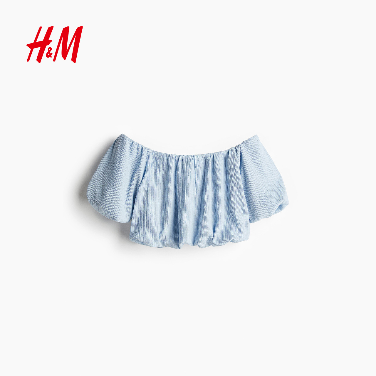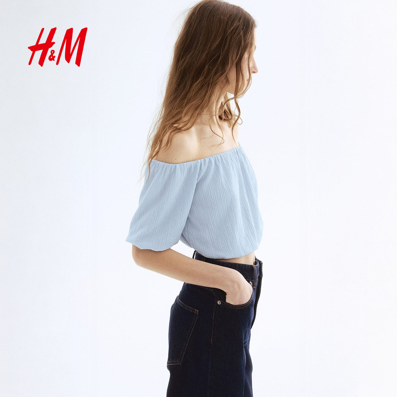 HM女装上衣T恤冬季时尚露肩短上衣1283562