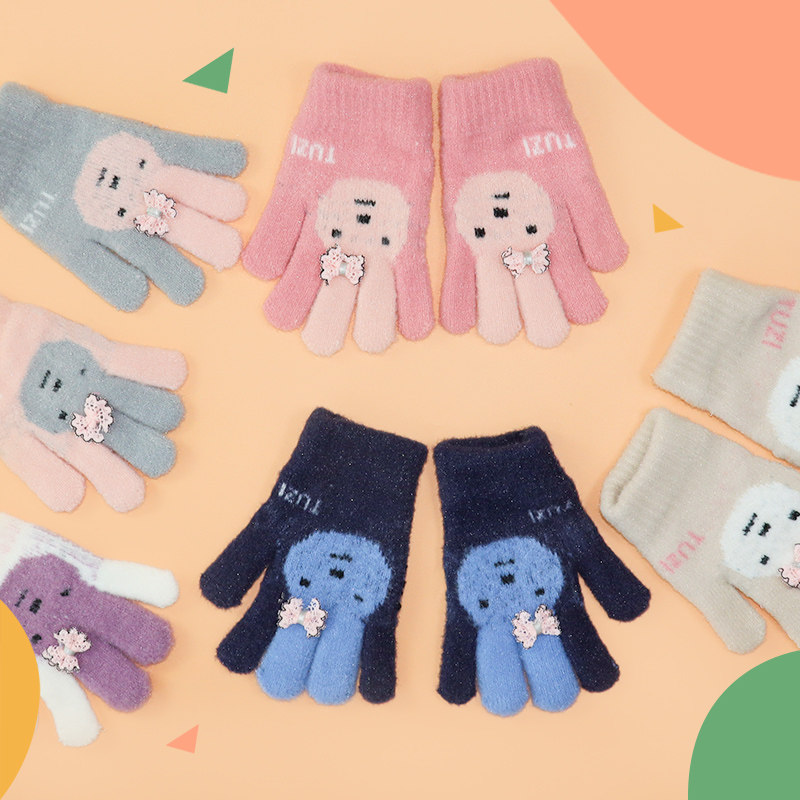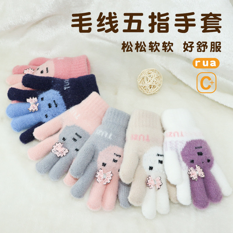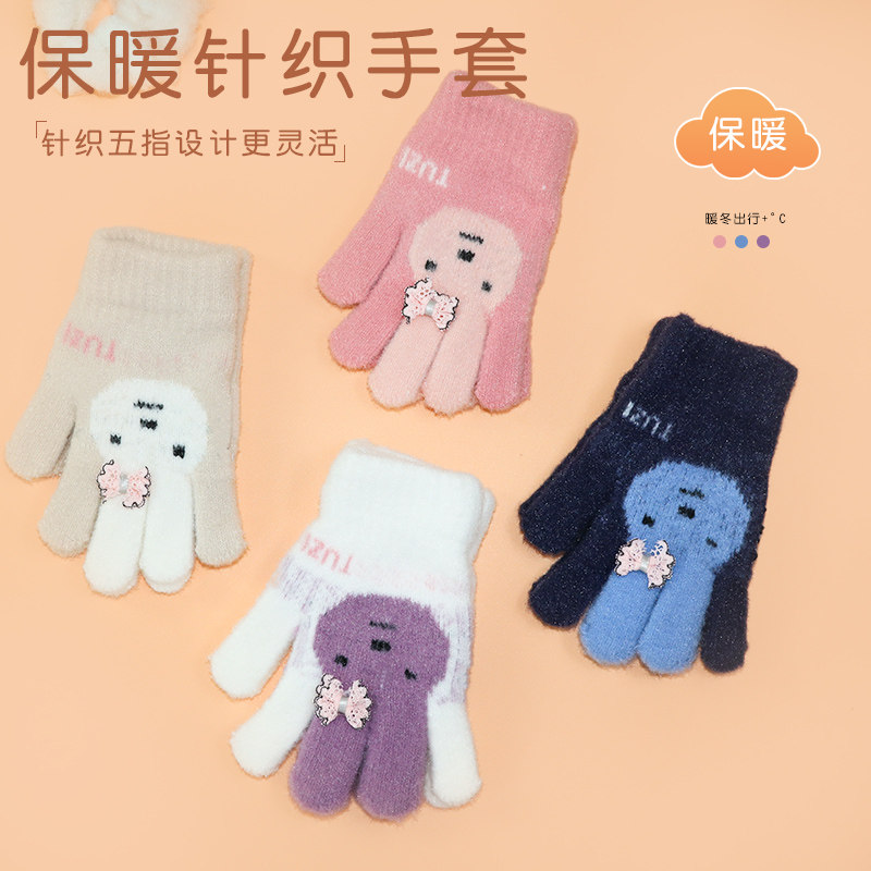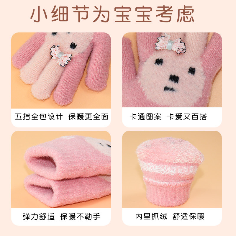尼多熊2025儿童手套宝宝保暖手套男女童五指手套针织分指手套秋冬