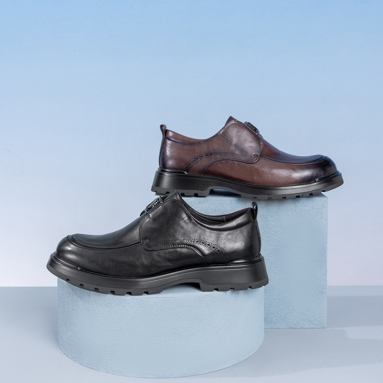 【小牛皮】青润chioryn袋鼠鞋男黑色真皮增高厚底休闲通勤风皮鞋