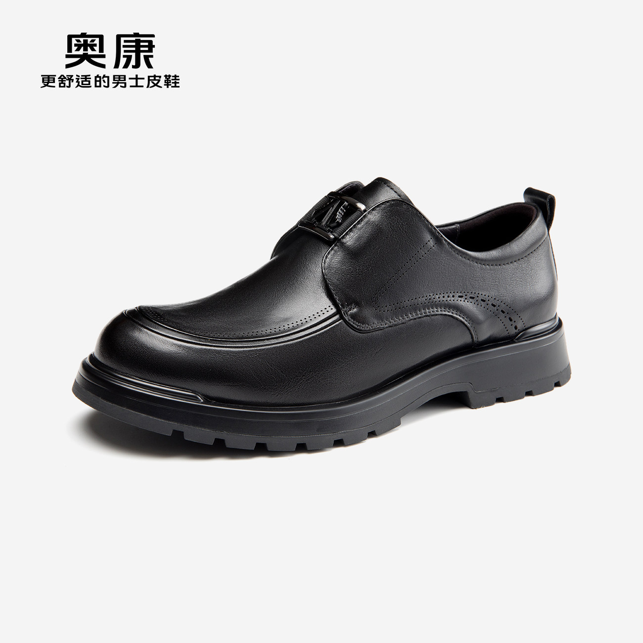 AOKANG奥康秋季新款商务休闲皮鞋男真皮厚底耐磨减震通勤鞋