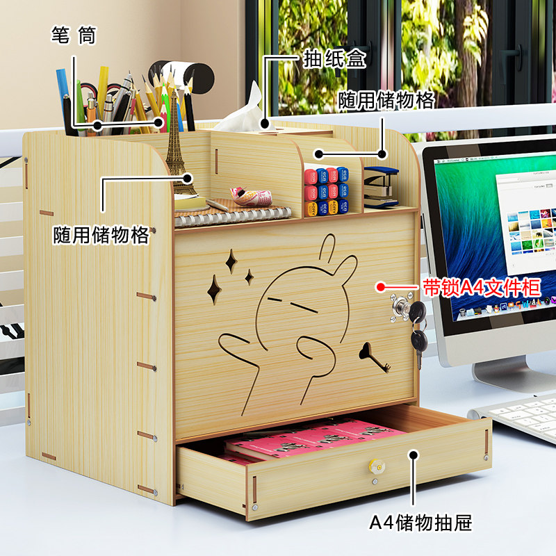 文件柜抽屉柜子带锁多层文件盒桌面文件柜抽屉式A4资料分类整理收