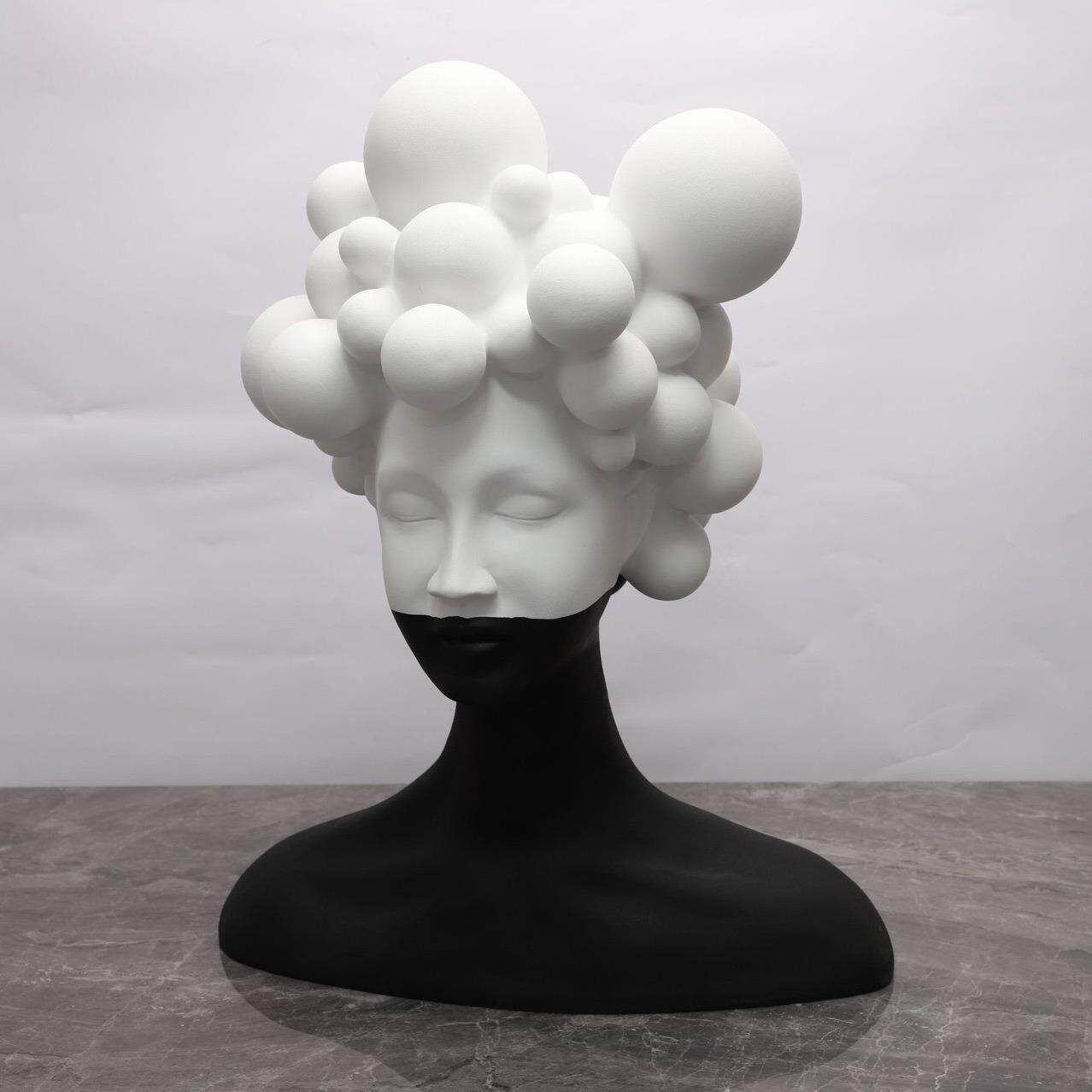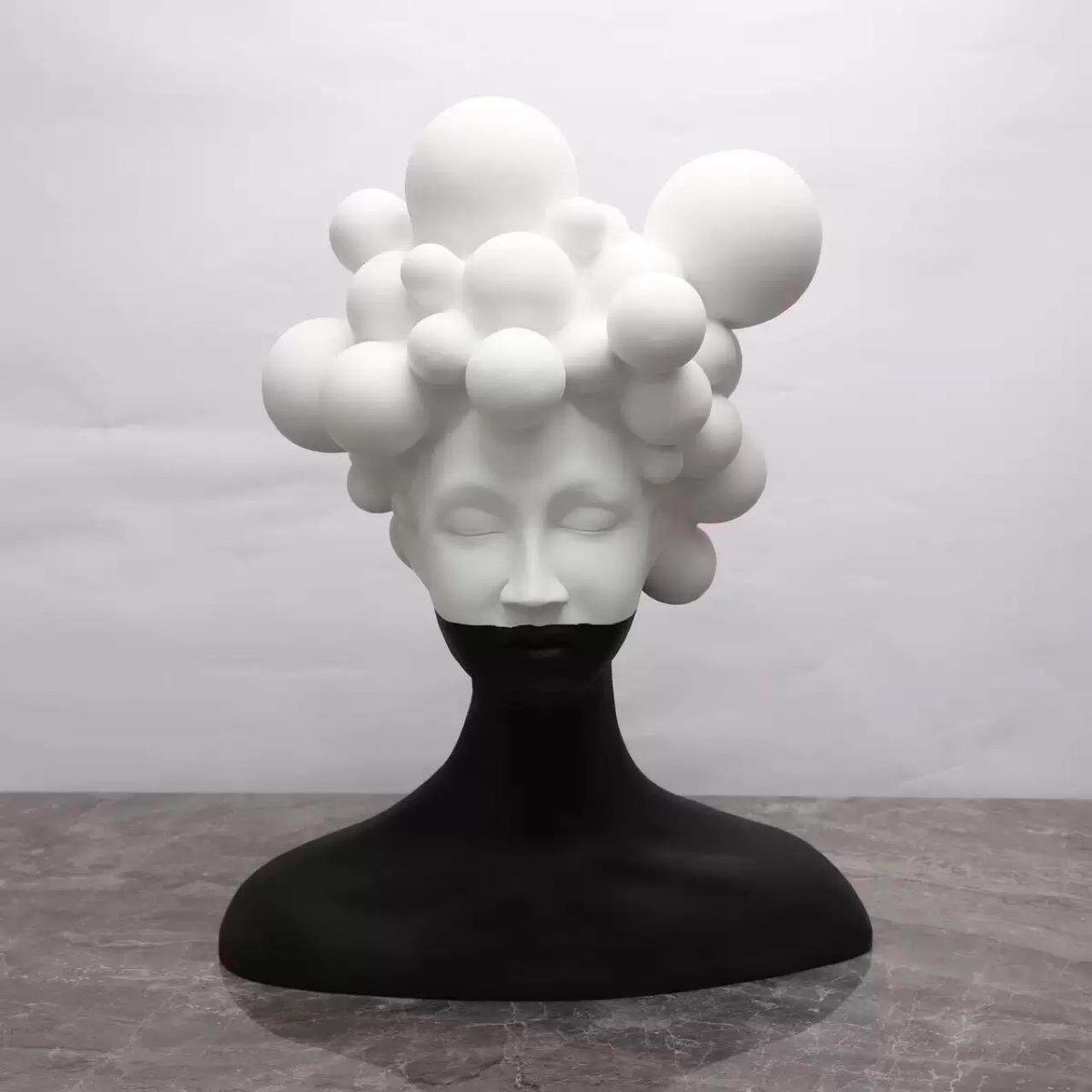 现代简约艺术人物雕塑树脂摆件样板间客厅创意黑白女郎软装饰品
