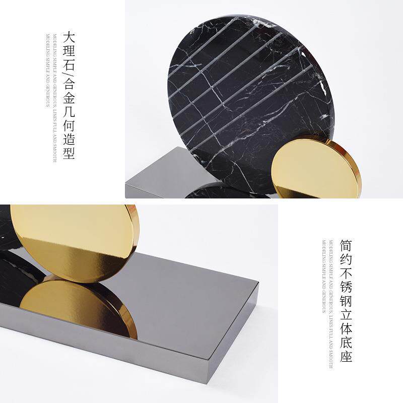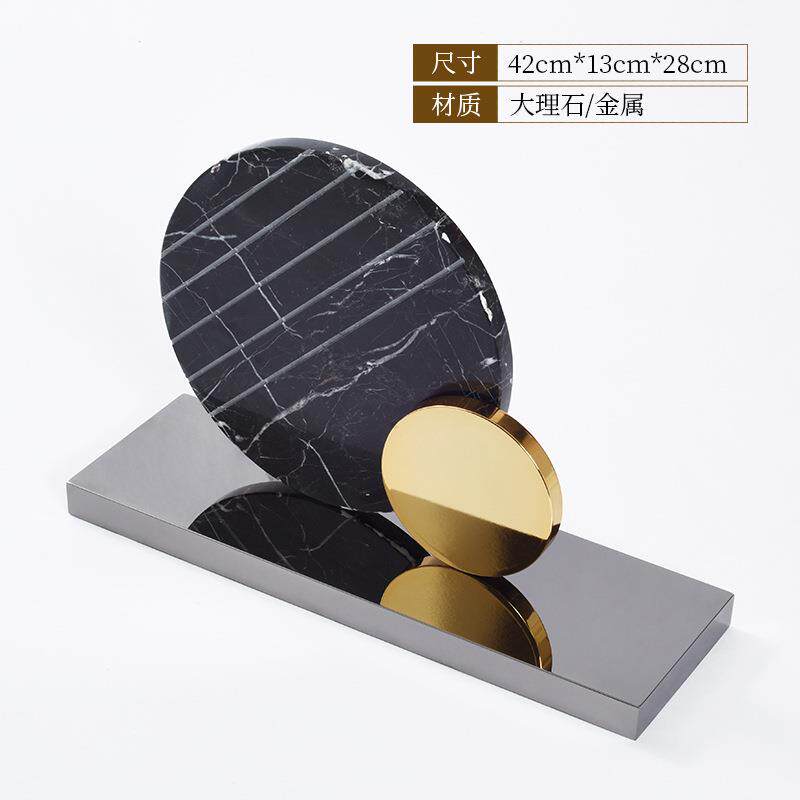 现代简约轻奢几何摆件样板房软装饰品大理石金属圆环屏风玄关摆设