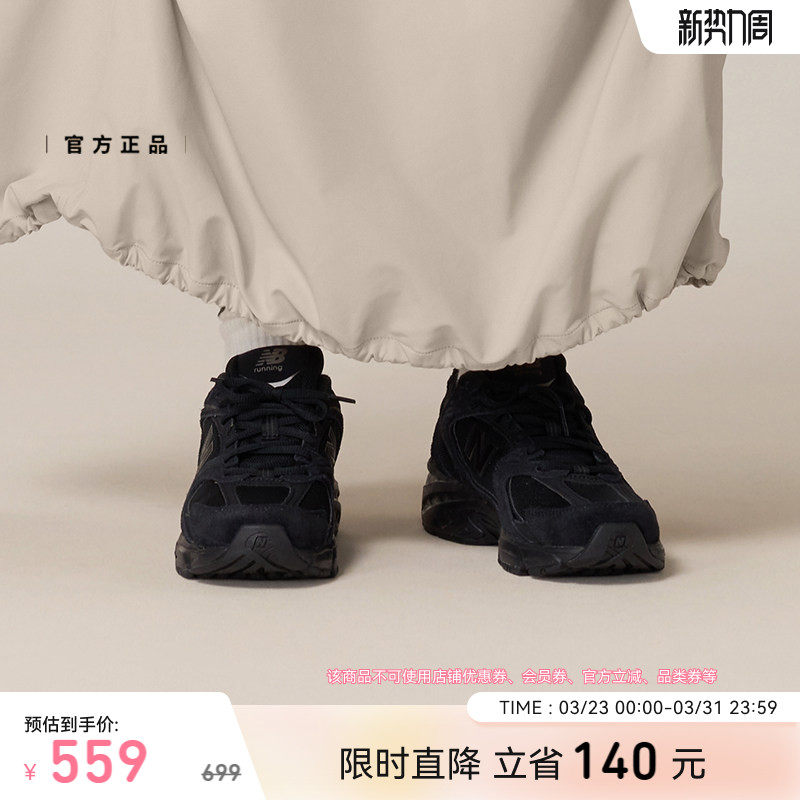 New Balance NB 官方正品潮流休闲运动百搭复古黑色老爹鞋U530JPB