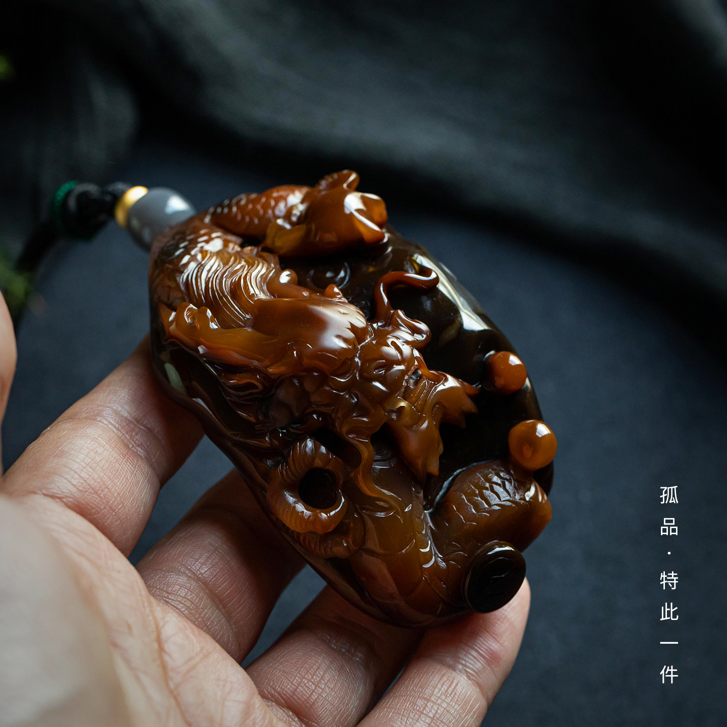 孤品【龙引千财·玛瑙】吊坠高档国风精工雕刻男女款项链一物一证