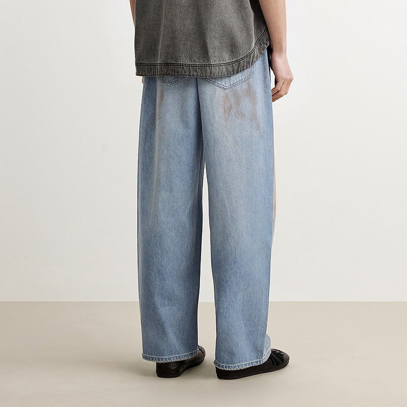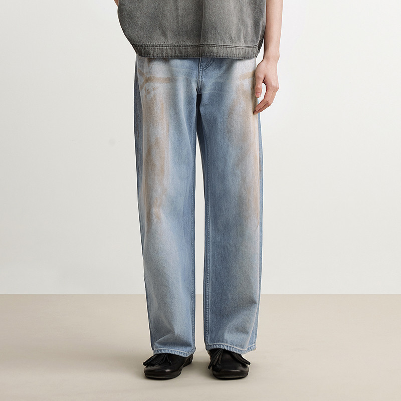 [含汉麻]速写男装春夏新款男士裤子棉麻牛仔裤直筒裤复古时髦