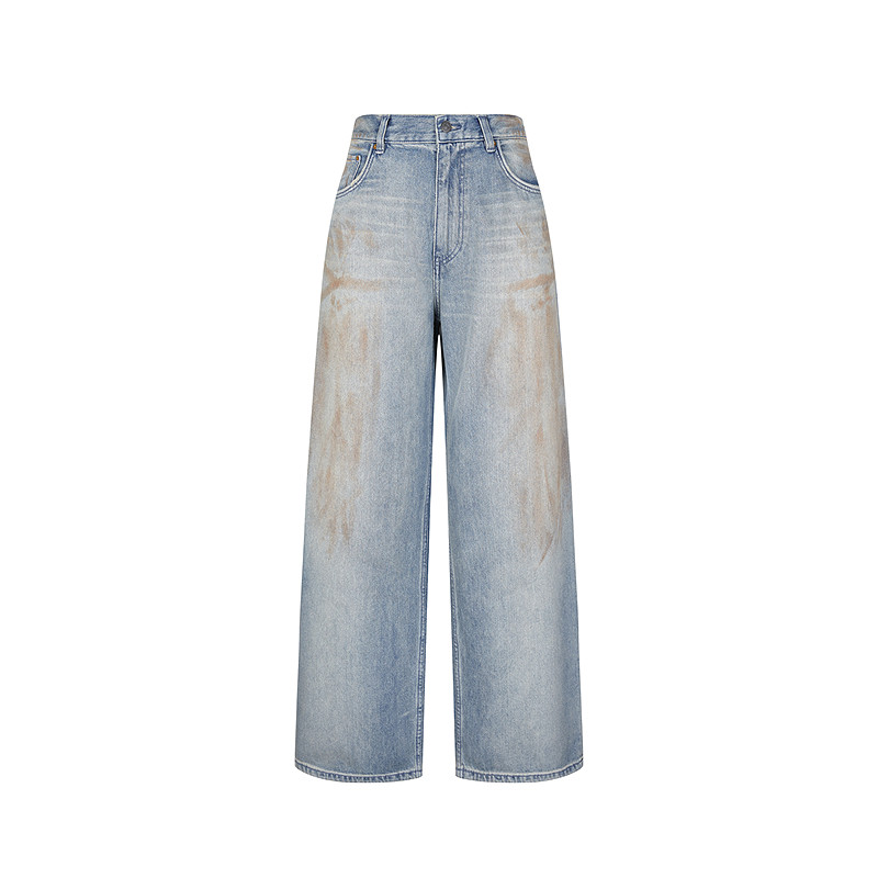 王安宇同款森马牛仔裤男做旧复古阔感弯刀裤宽松弧形裤2025冬新款