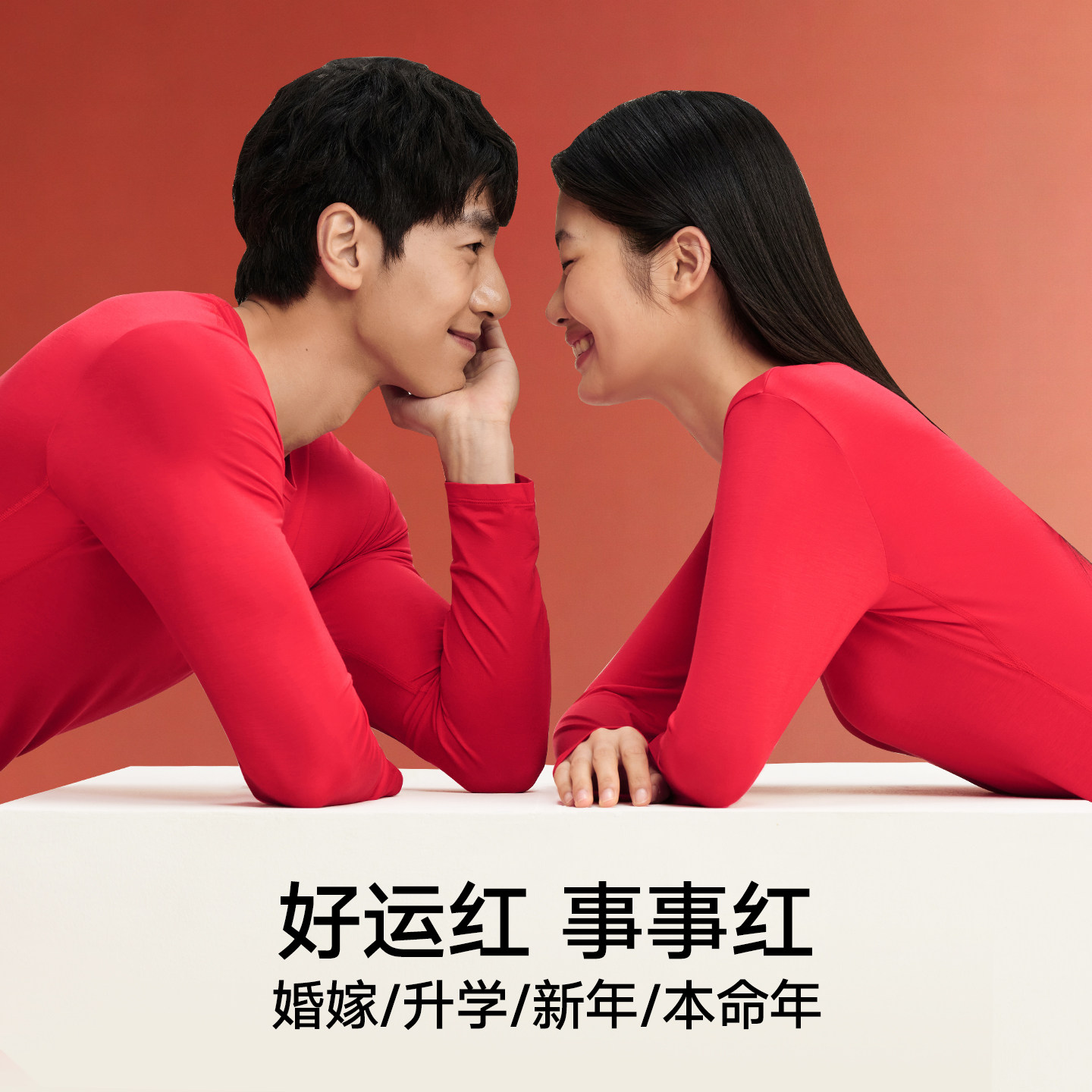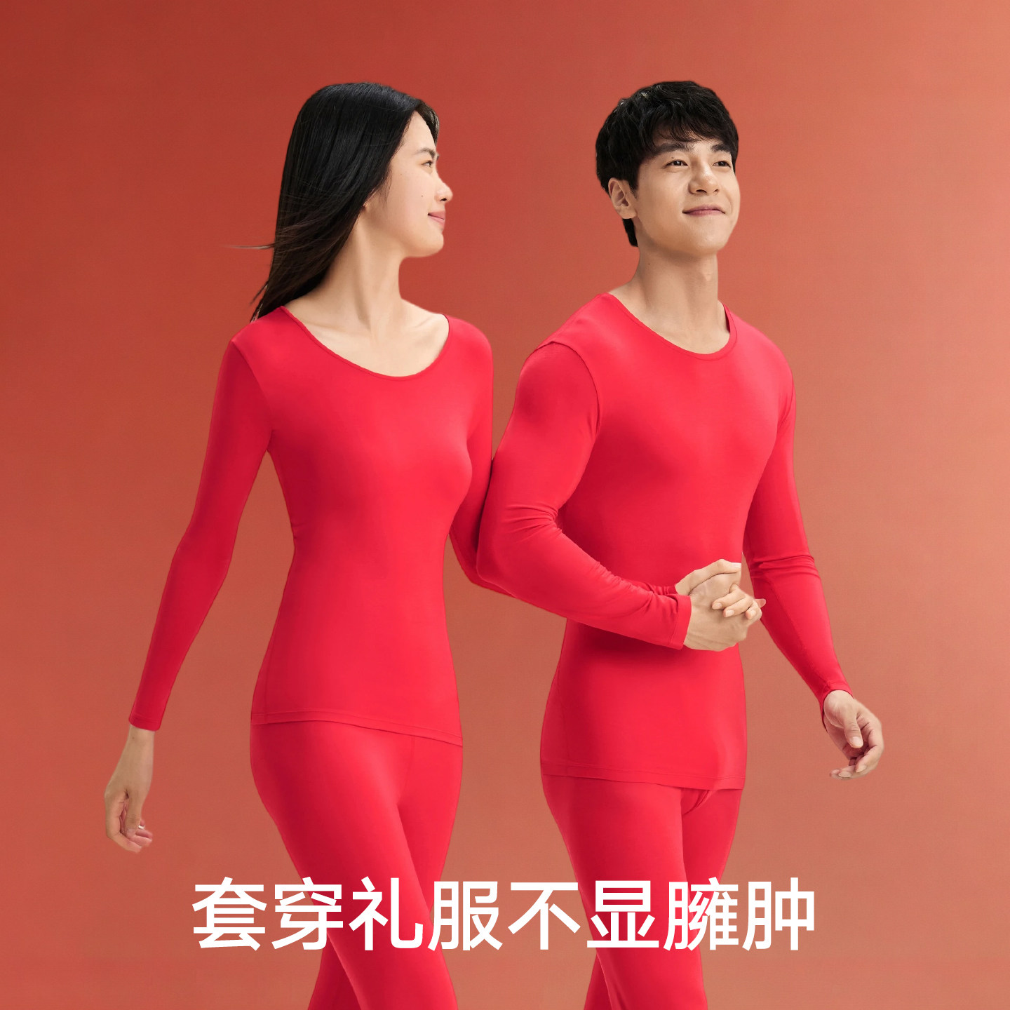 松山棉店羊绒蛋白轻薄保暖套装红色新年男士女士情侣保暖上衣裤子