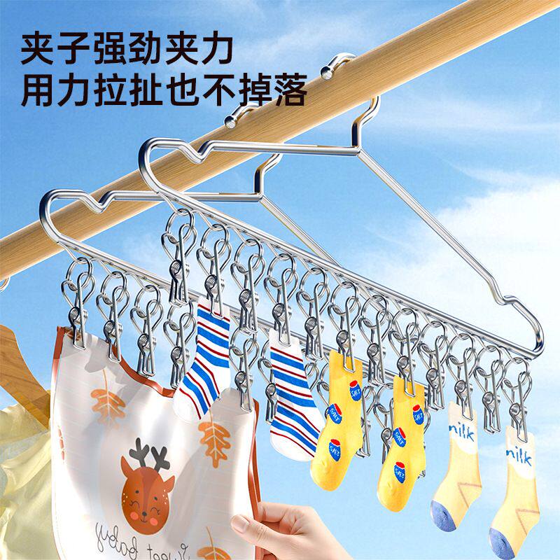 袜子晾晒架不锈钢晾衣夹阳台家用多夹子多功能衣架晒袜子内衣神器