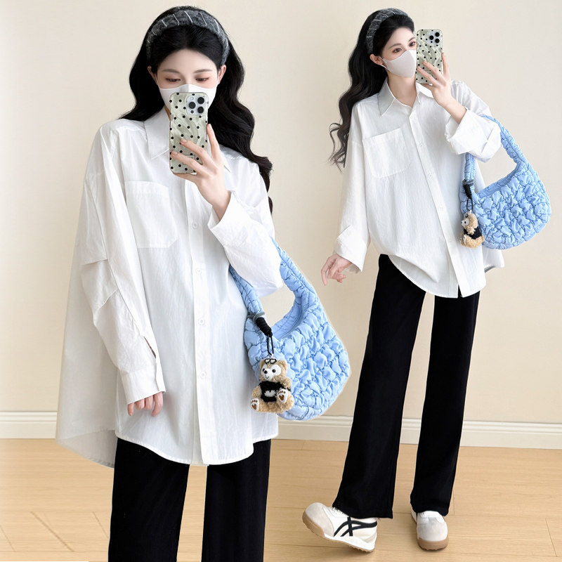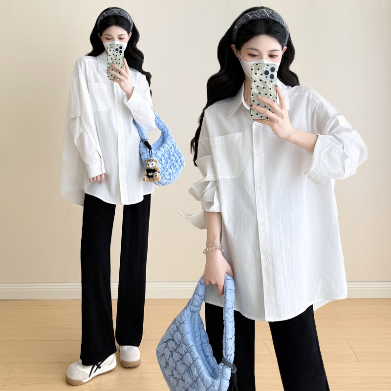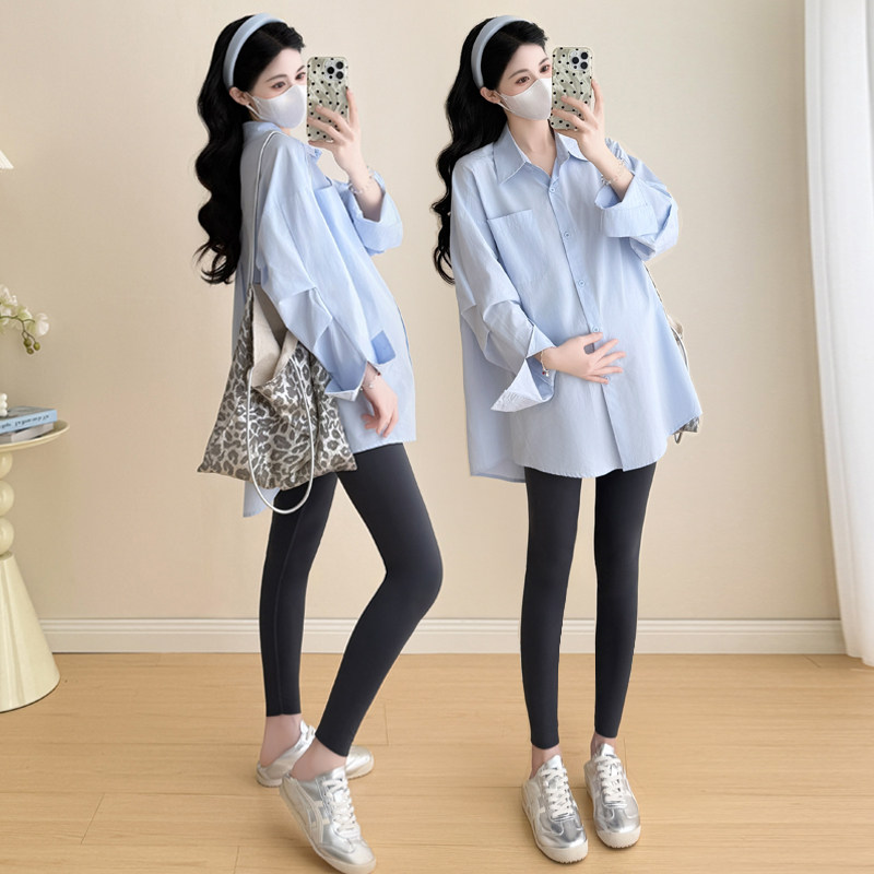 婧麒孕妇装早秋春秋2025新款韩版中长款大码休闲衬衫时尚潮妈长袖