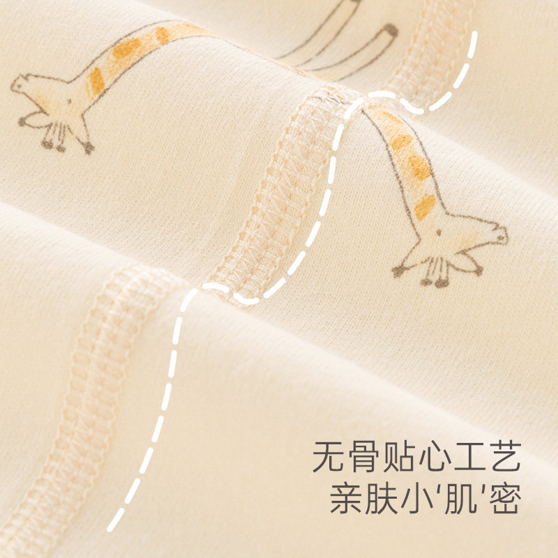 小猪大卫新生儿秋季保暖连体衣男女宝宝卡通印花中开夹棉爬服
